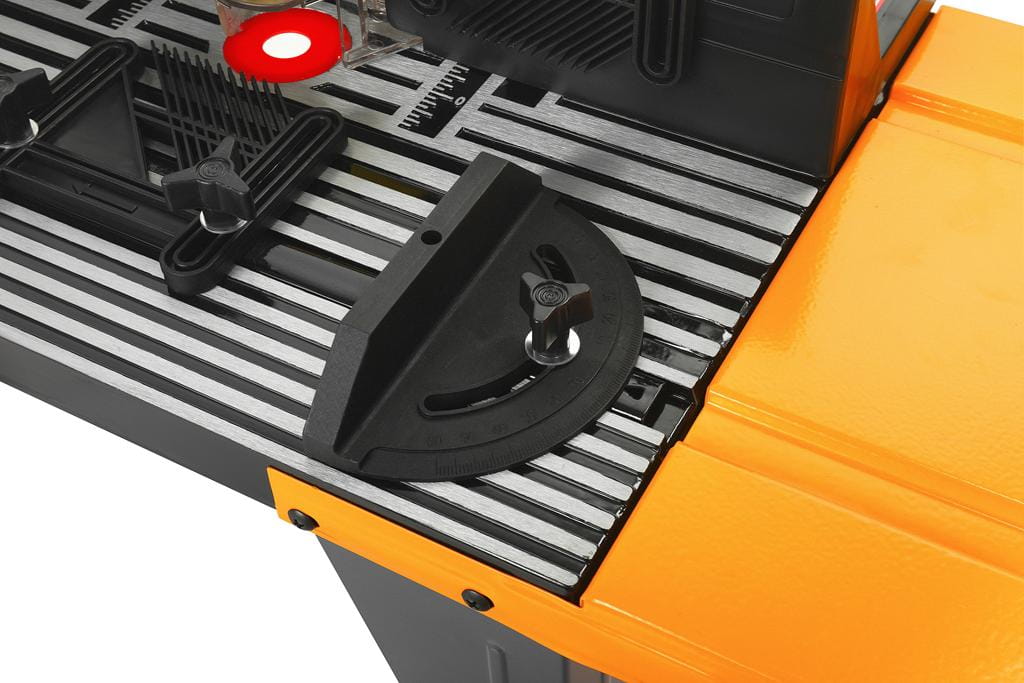 Po każdej sesji roboczej powierzchnię blatu należy oczyścić z wiórów i pyłu, a prowadnice regulacyjne regularnie smarować, aby zachować płynność nastawu i dokładność ustawień. Elementy metalowe narażone na wilgoć warto zabezpieczać preparatem antykorozyjnym. Instrukcja obsługi dołączona do zestawu zawiera szczegółowe wytyczne dotyczące montażu i konserwacji.