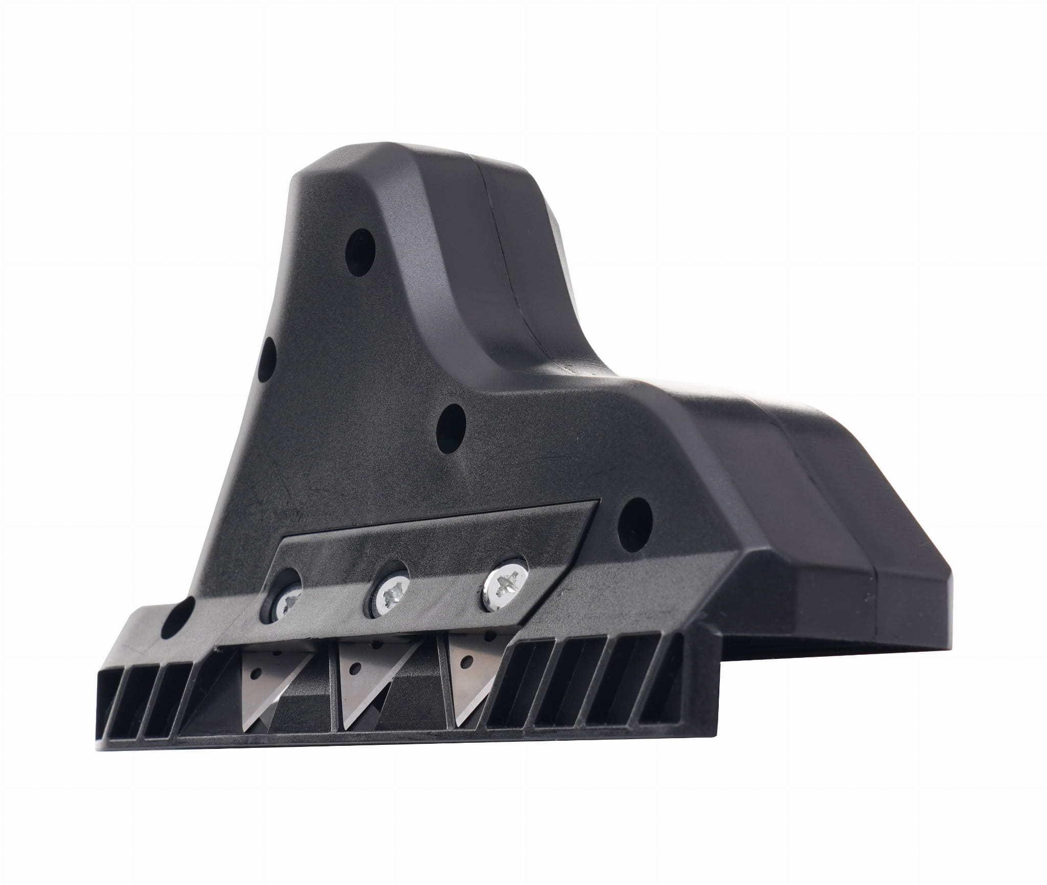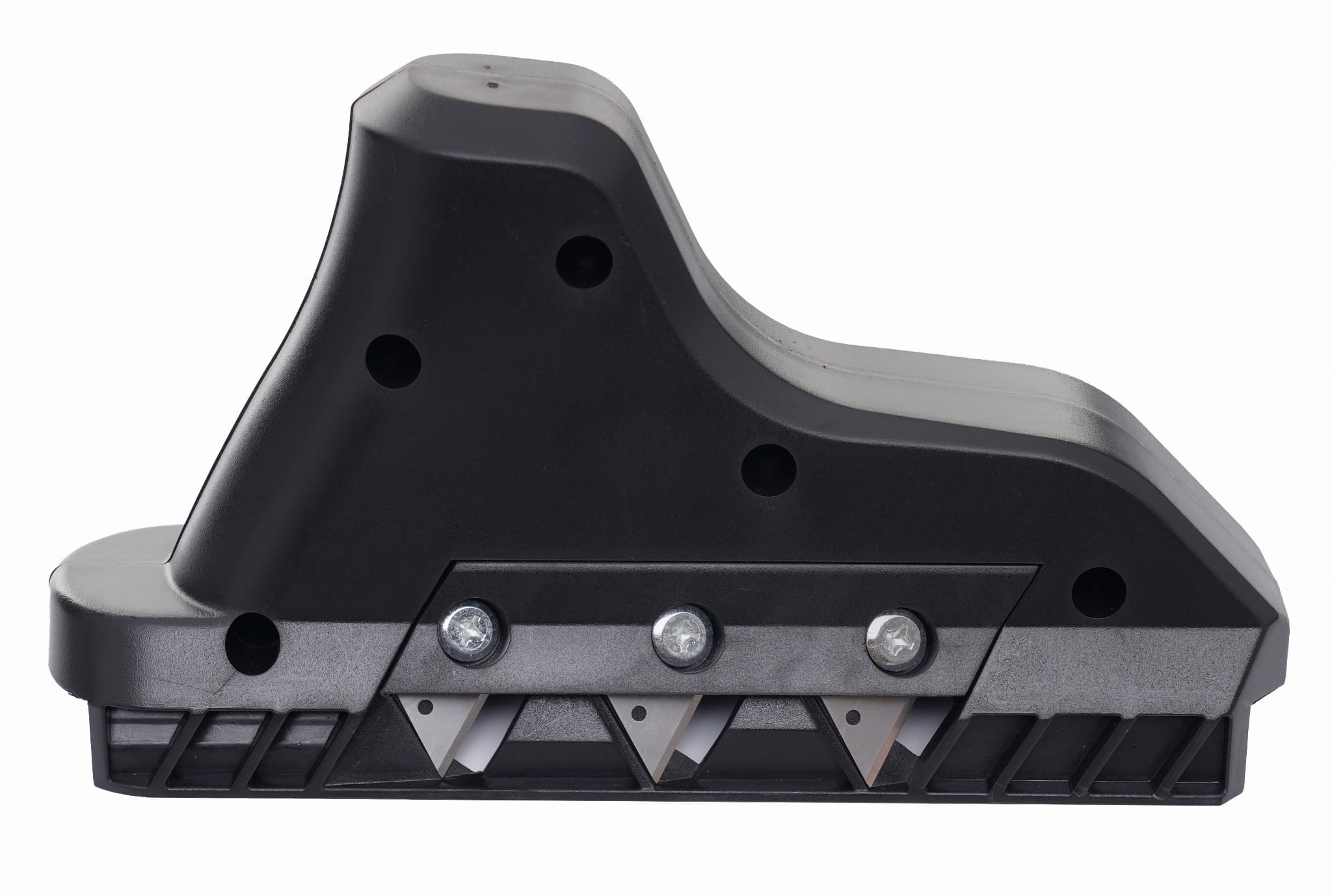 Zestaw trzech ostrzy trapezowych pozwala na wykonanie pełnego fazowania jednym przejściem wzdłuż krawędzi. Ostrza trapezowe są powszechnie dostępne i łatwe do wymiany po stępieniu, co obniża koszty eksploatacji narzędzia.