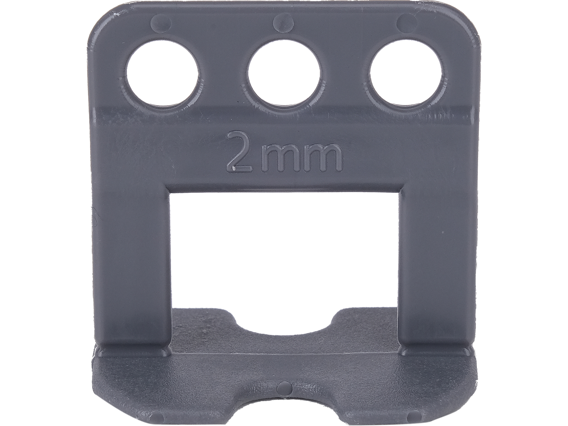 Konstrukcja klipsów zapewnia jednolitą szerokość spoiny na całej powierzchni. Fuga 2 mm odpowiada standardom stosowanym przy płytkach rektyfikowanych i nowoczesnych wykończeniach minimalistycznych.