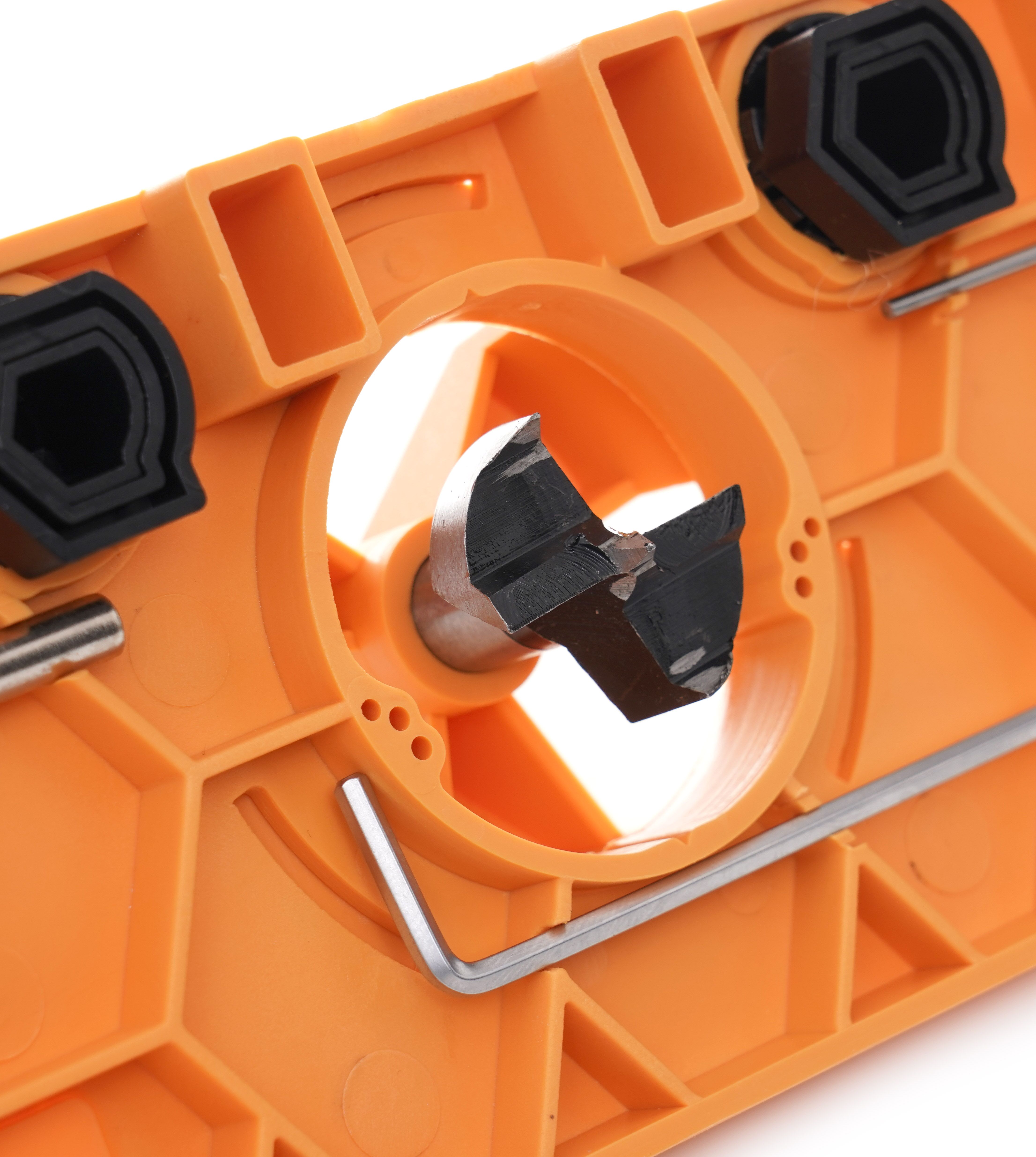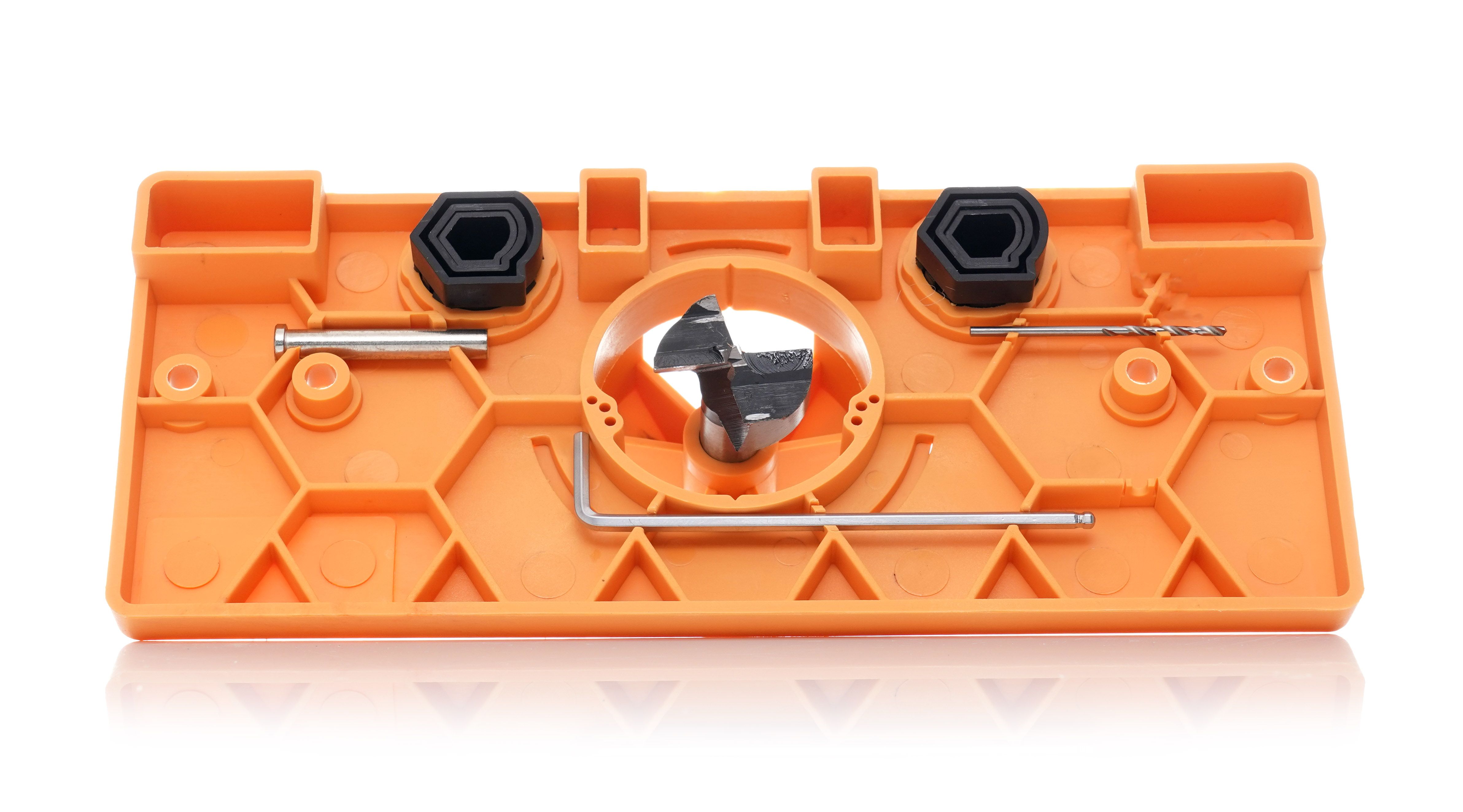 Ułatwia zachowanie powtarzalności otworów pod zawiasy, co przekłada się na lepsze spasowanie i estetyczny efekt końcowy.