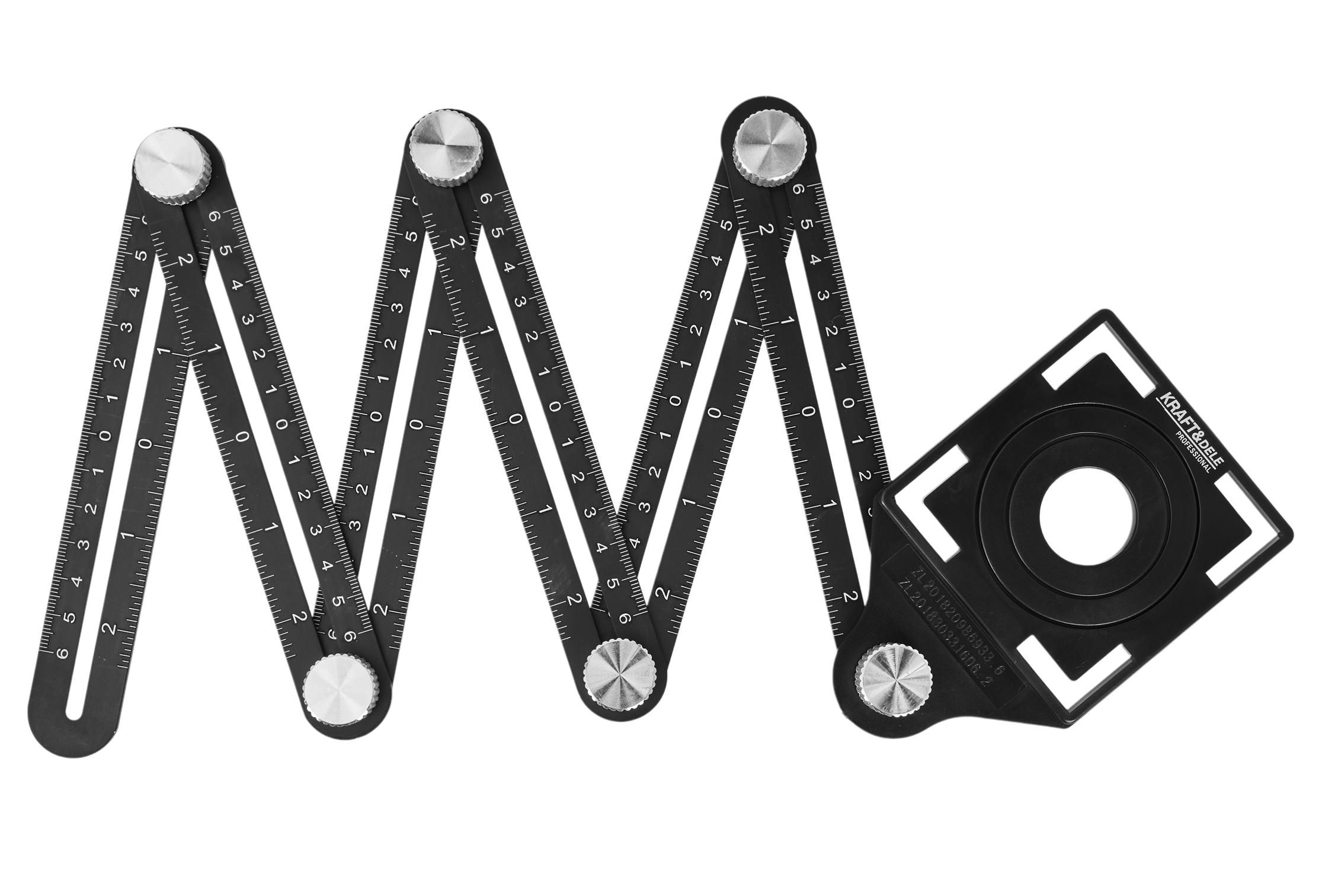 Szablon przymiar wzornik znacznik otworów płytek KD10385 pomaga przenieść pomiar na materiał w sposób czytelny i powtarzalny, co ułatwia osiągnięcie równej linii cięcia i estetycznych wycięć.