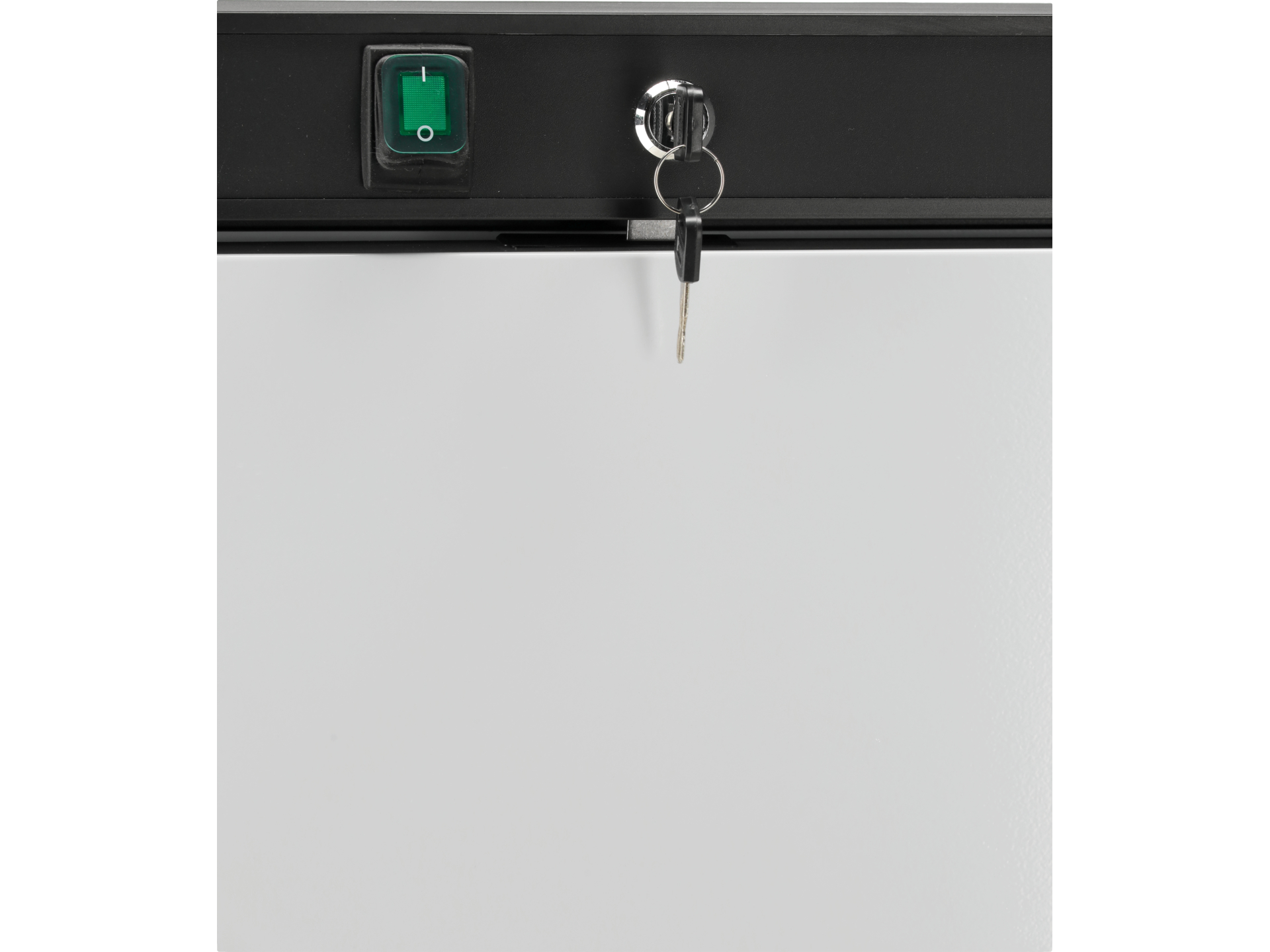 Neutralna kolorystyka obudowy ułatwia utrzymanie czystości i wpisuje się w standardy wyposażenia pomieszczeń gastronomicznych oraz sklepowych.