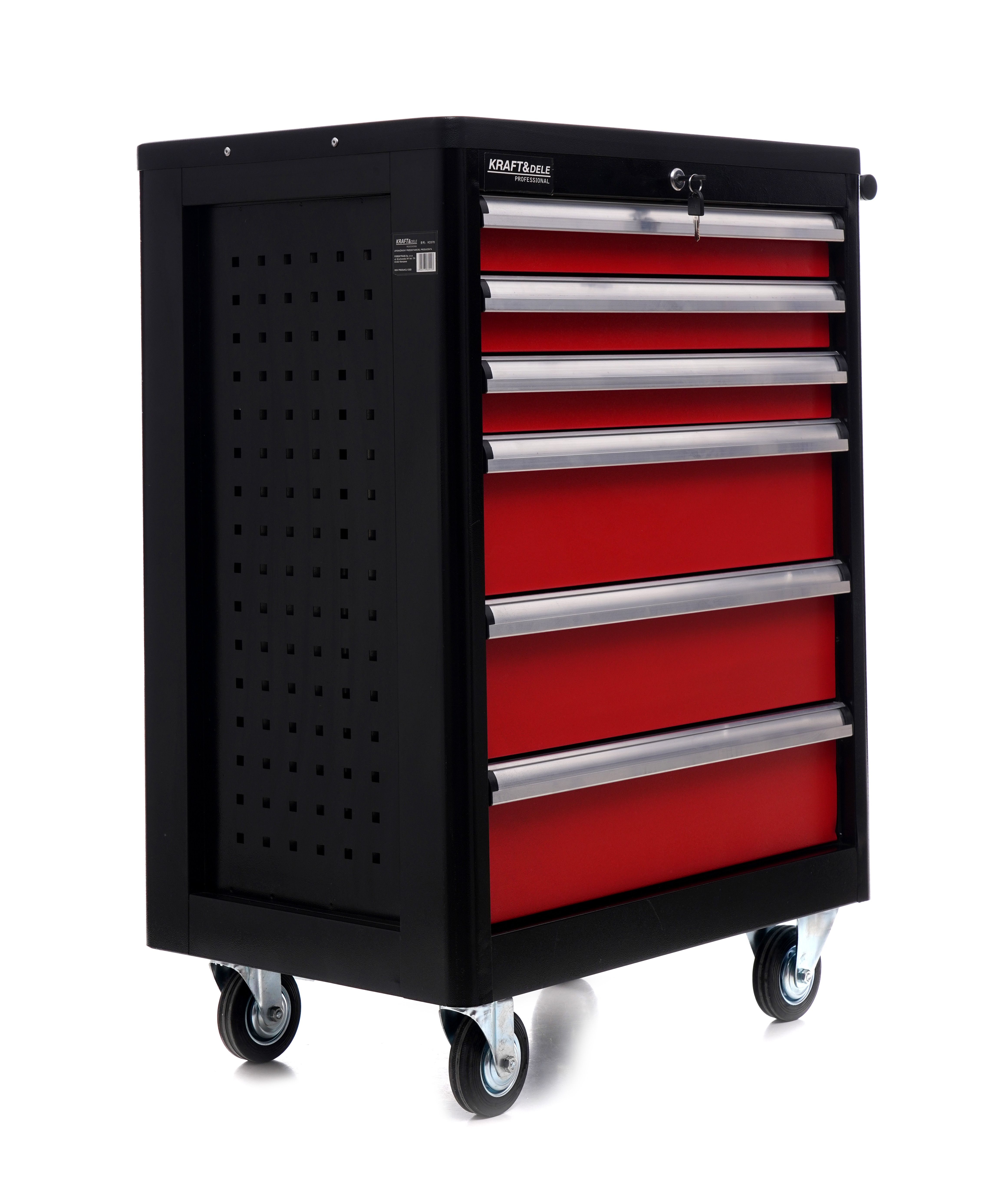 Szafa narzędziowa pusta KD370 / KD370 / KRAFT&DELE to solidna, funkcjonalna szafka warsztatowa z 6 szufladami na prowadnicach łożyskowanych, przygotowana do pracy w garażu i warsztacie. Jeśli szukasz rozwiązania, które usprawnia organizację narzędzi i pozwala je zamknąć na klucz, model KD370 będzie trafnym wyborem.