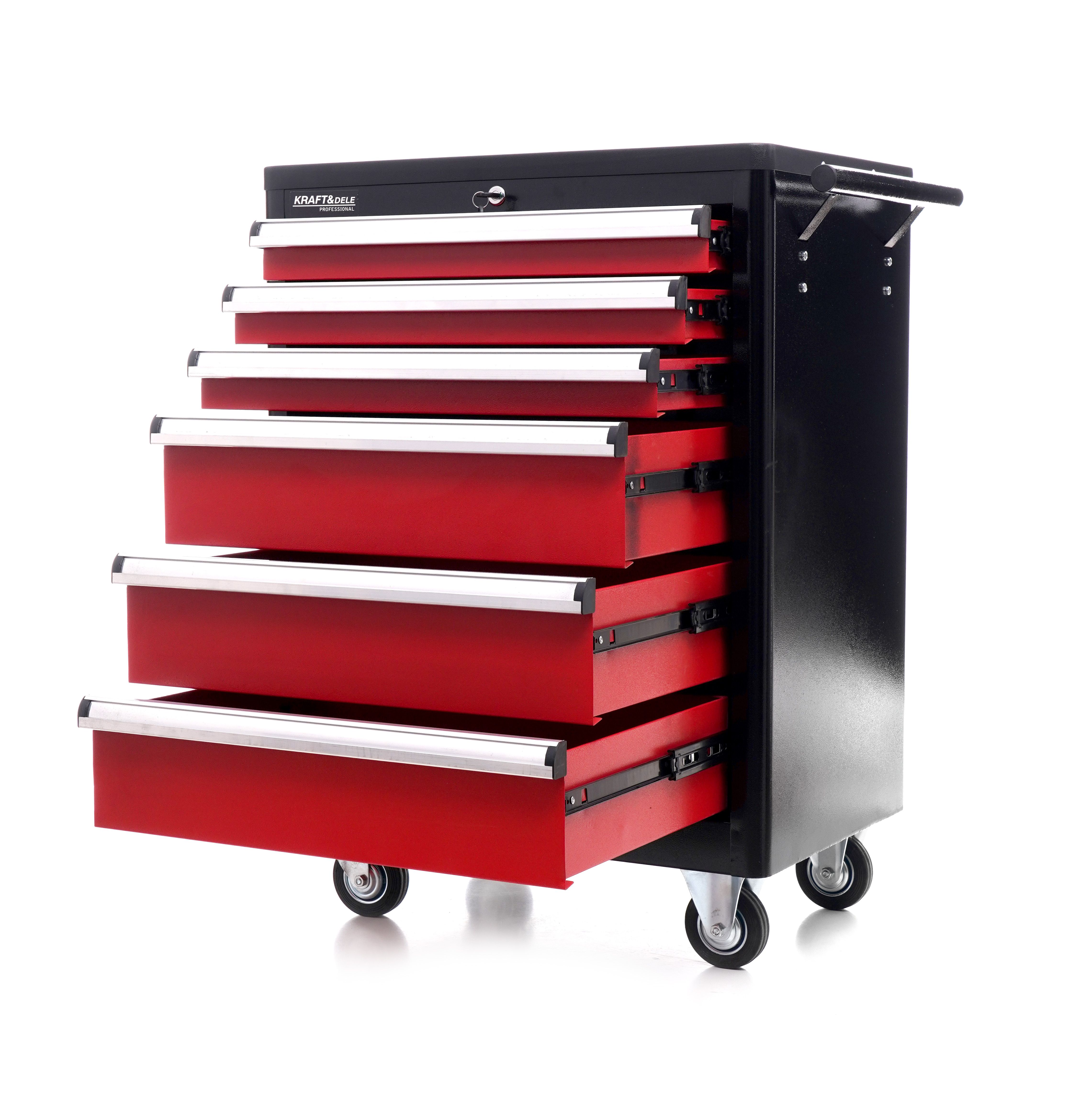 Szafa narzędziowa pusta KD370 KRAFT&DELE to praktyczna szafka warsztatowa do garażu i warsztatu samochodowego, gdy liczy się szybki dostęp do narzędzi i porządek na stanowisku. Układ 6 szuflad ułatwia segregację drobnicy i większych akcesoriów bez mieszania wyposażenia.