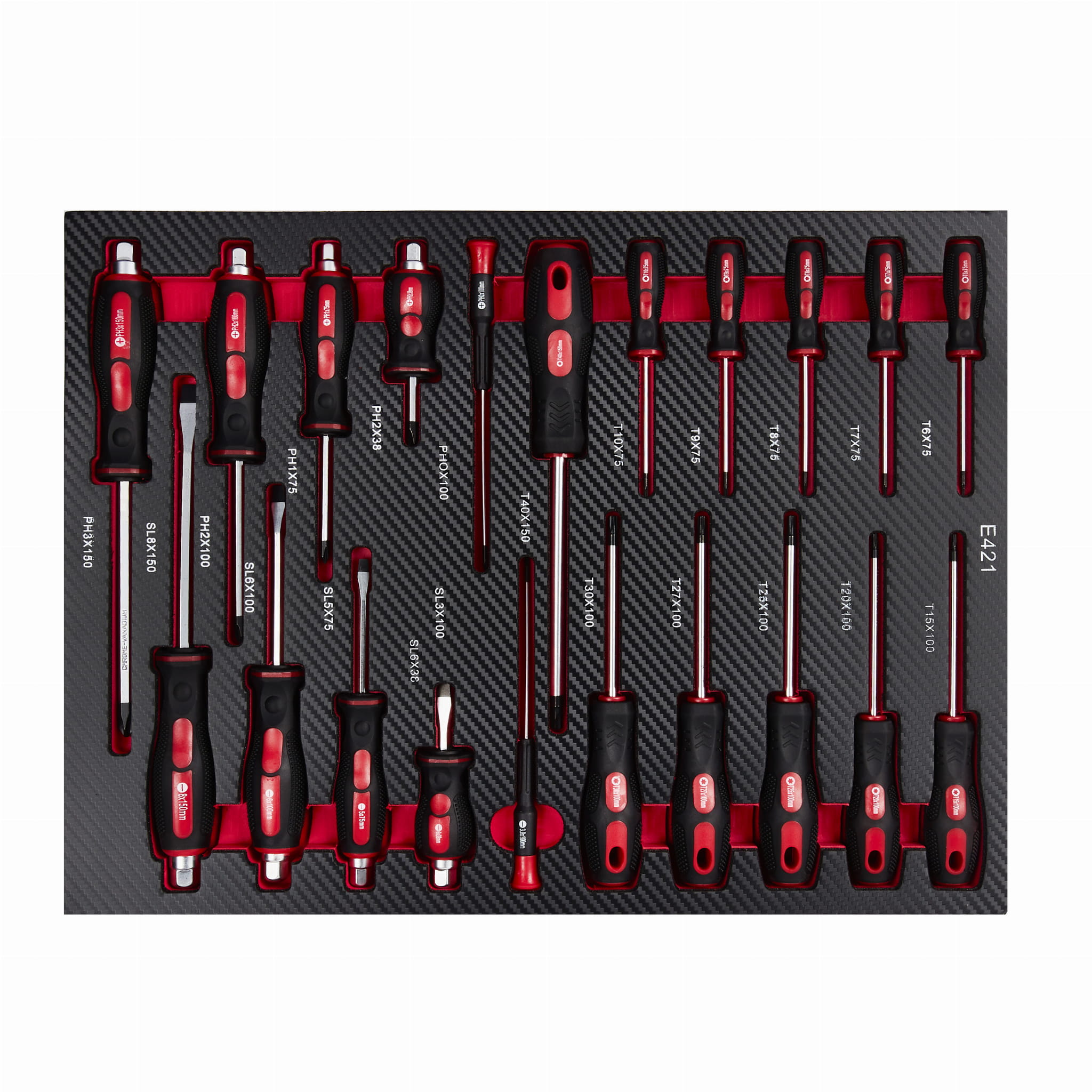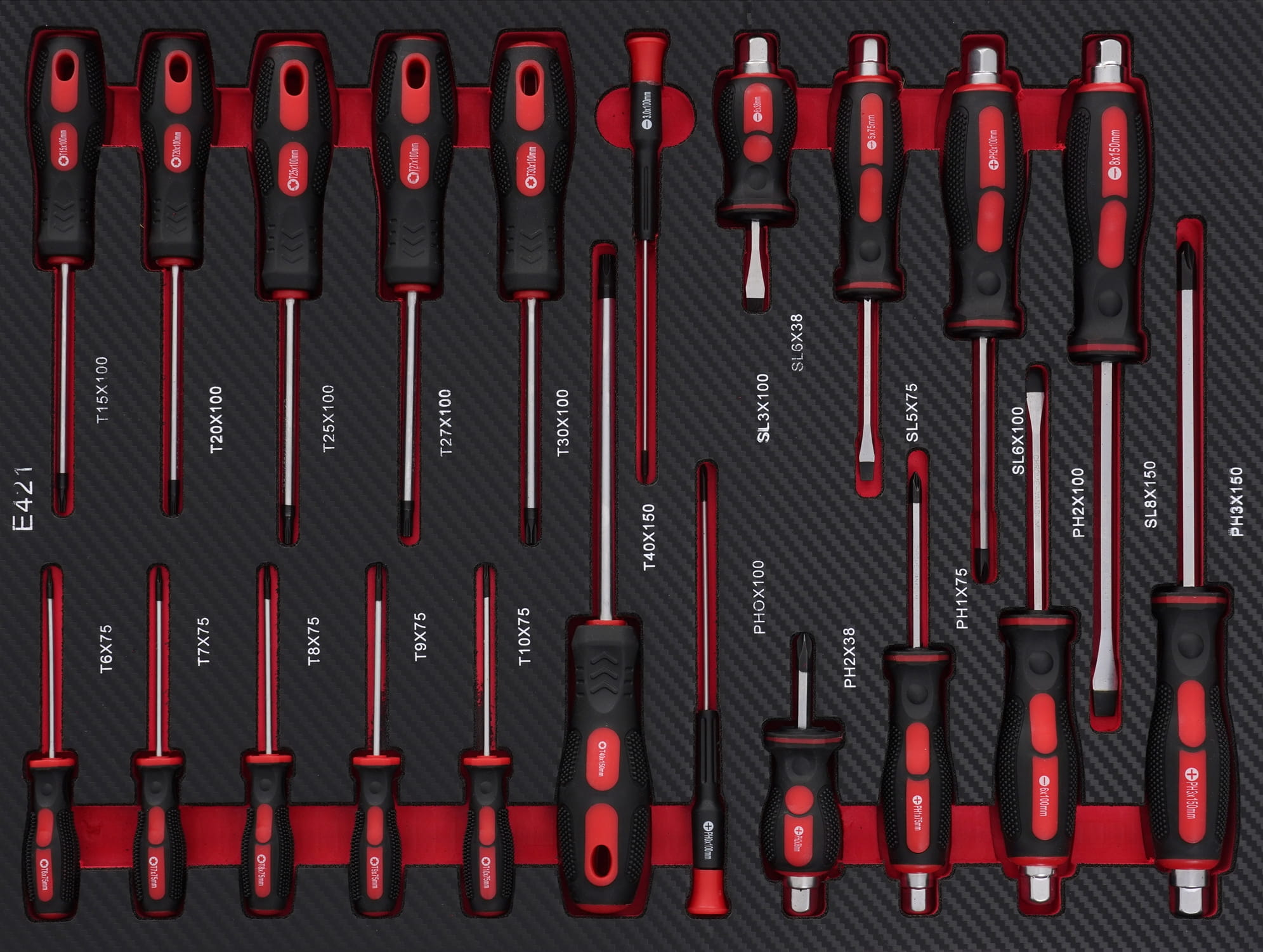 Narzędzia wykonane ze stali CrV charakteryzują się podwyższoną twardością i odpornością na skręcanie w porównaniu ze stalą węglową. Materiał ten stosowany jest w narzędziach przeznaczonych do regularnej pracy serwisowej i montażowej.