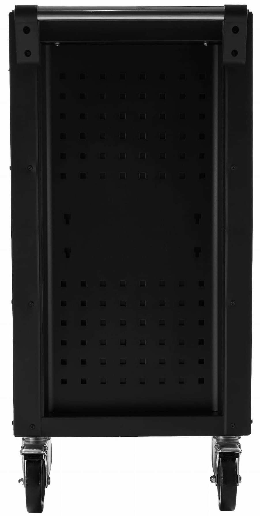 Stalowa konstrukcja szafki odpowiada za jej masę (124 kg) i sztywność. Gumowe odbojniki na narożnikach i krawędziach chronią przed uszkodzeniem lakierowanych powierzchni pojazdów oraz ścian warsztatu przy manewrowaniu.