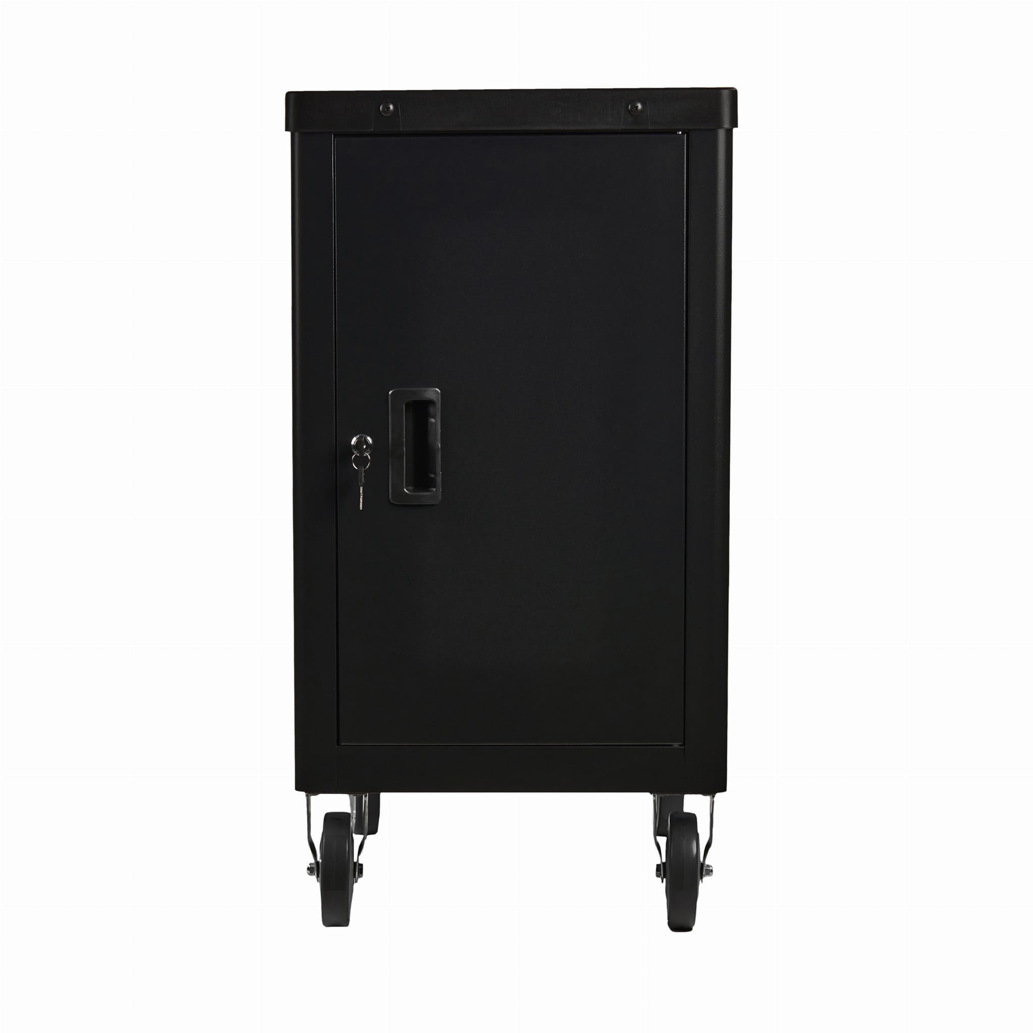 Wózek wyposażono w dwupoziomowy schowek zamykany na kluczyk (w zestawie 2 klucze). Rozwiązanie przydatne do przechowywania narzędzi pomiarowych, materiałów eksploatacyjnych lub innych elementów wymagających zabezpieczenia przed dostępem osób trzecich.