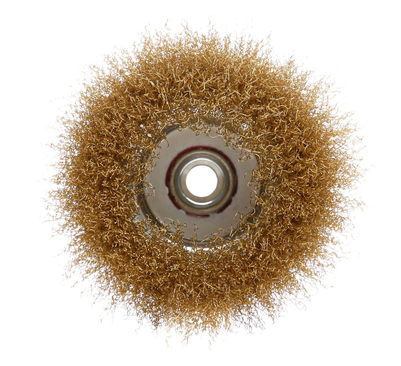Szczotka druciana czołowa przeznaczona do montażu na szlifierkach kątowych wyposażonych w gwint M14. Wykonana z drutu mosiężnego w układzie czołowym, umożliwia obróbkę dużych powierzchni płaskich — oczyszczanie, odrdzewianie oraz usuwanie powłok malarskich i zanieczyszczeń spawalniczych.