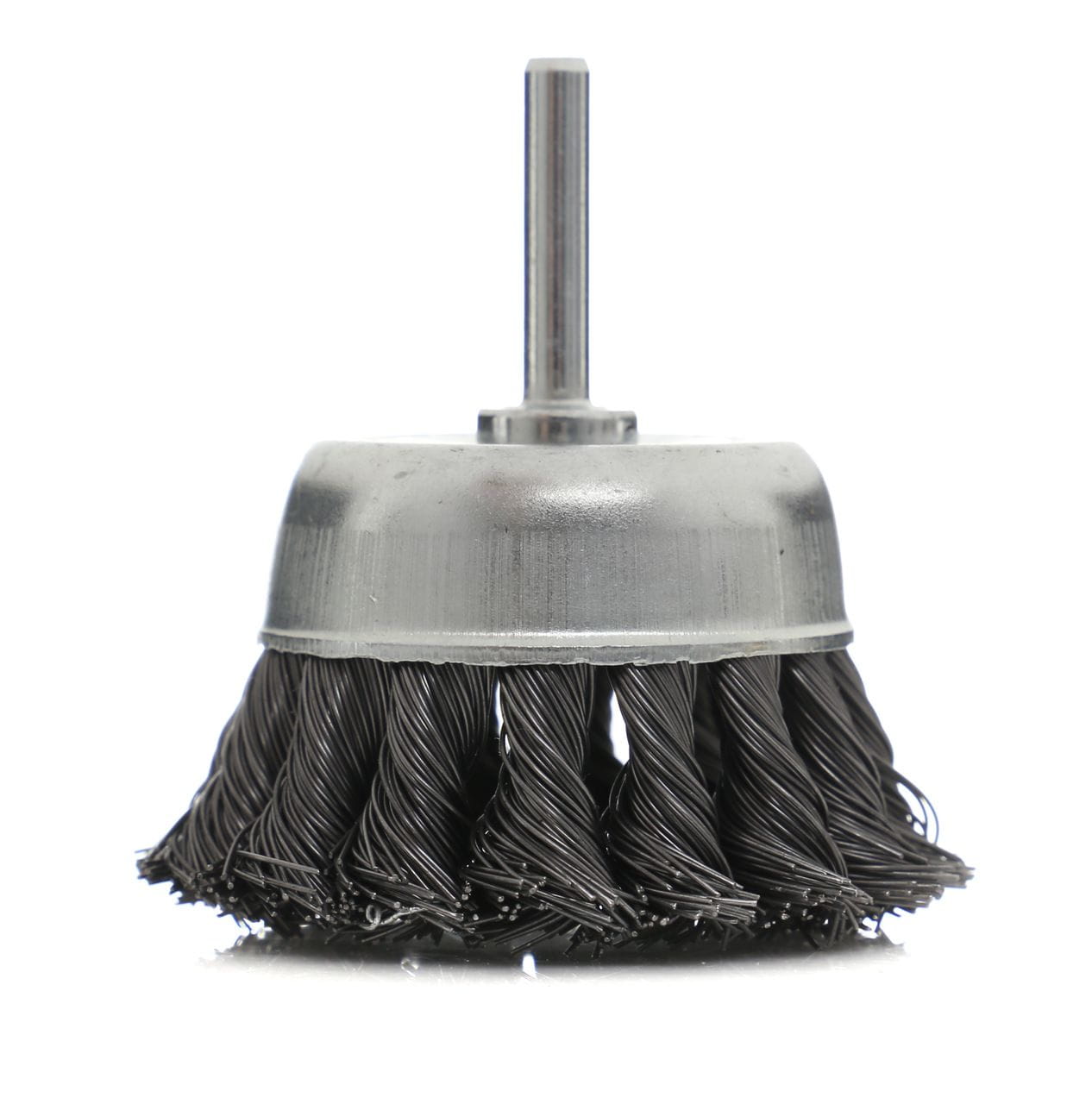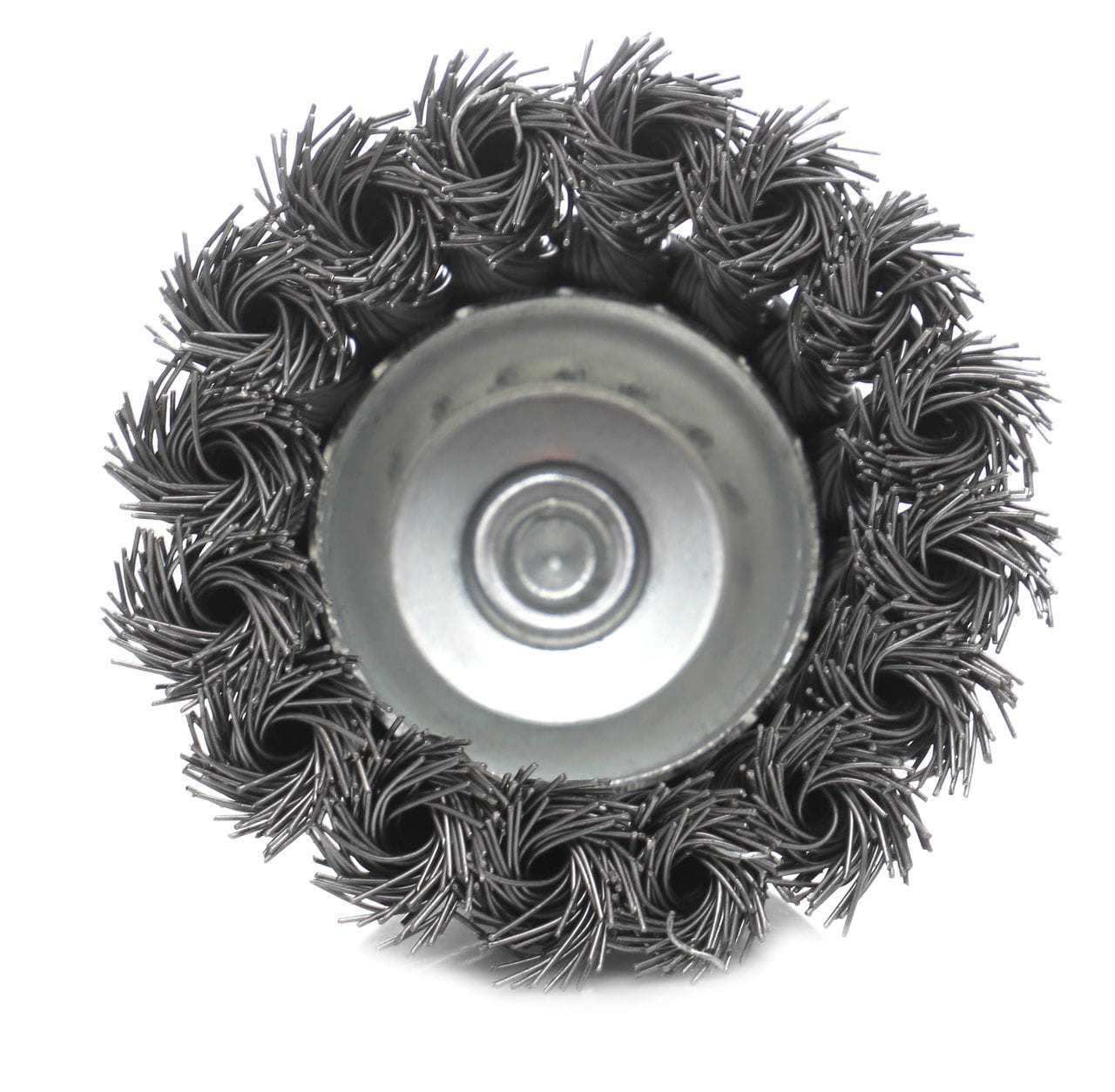 Szczotka czołowa pleciona z trzpieniem M6 przeznaczona do montażu w wiertarkach i wkrętarkach. Umożliwia mechaniczne czyszczenie i obróbkę powierzchni metalowych, drewnianych oraz betonowych na obszarze o średnicy 75 mm.