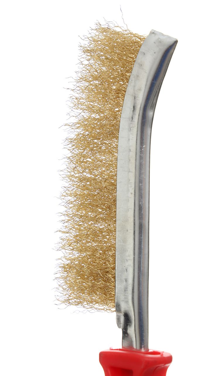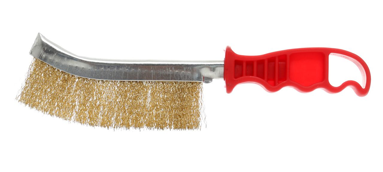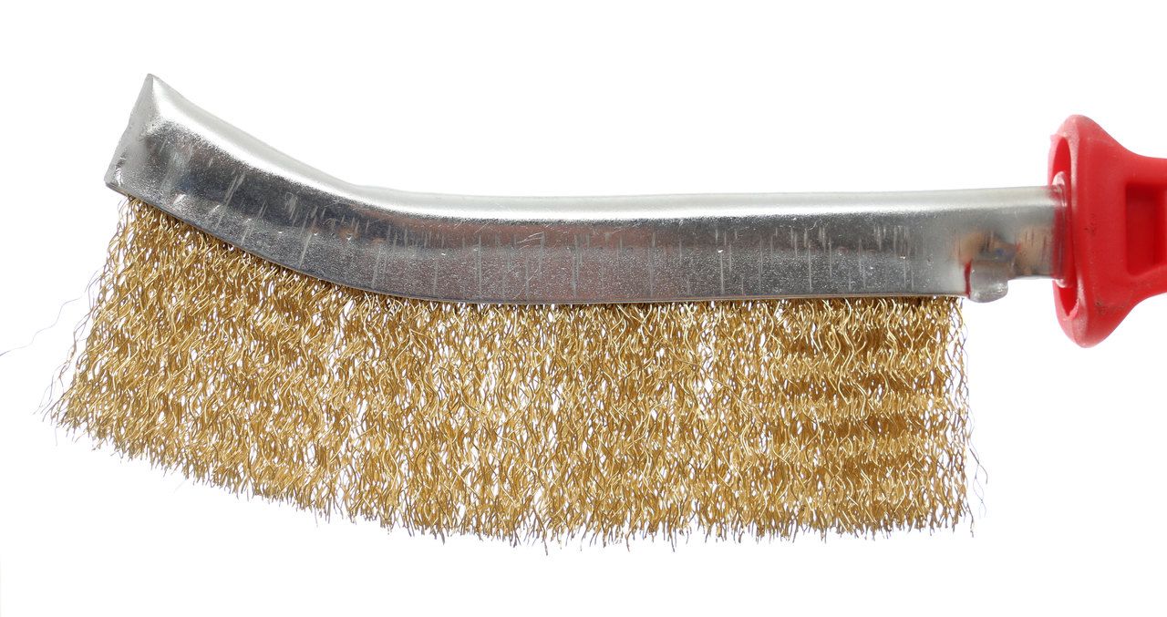 Szczotka druciana z drutem mosiężnym i plastikową rączką przeznaczona do ręcznego czyszczenia i obróbki powierzchni. Sprawdza się przy usuwaniu rdzy, farb, zgorzeliny oraz czyszczeniu spawów na dużych powierzchniach roboczych.