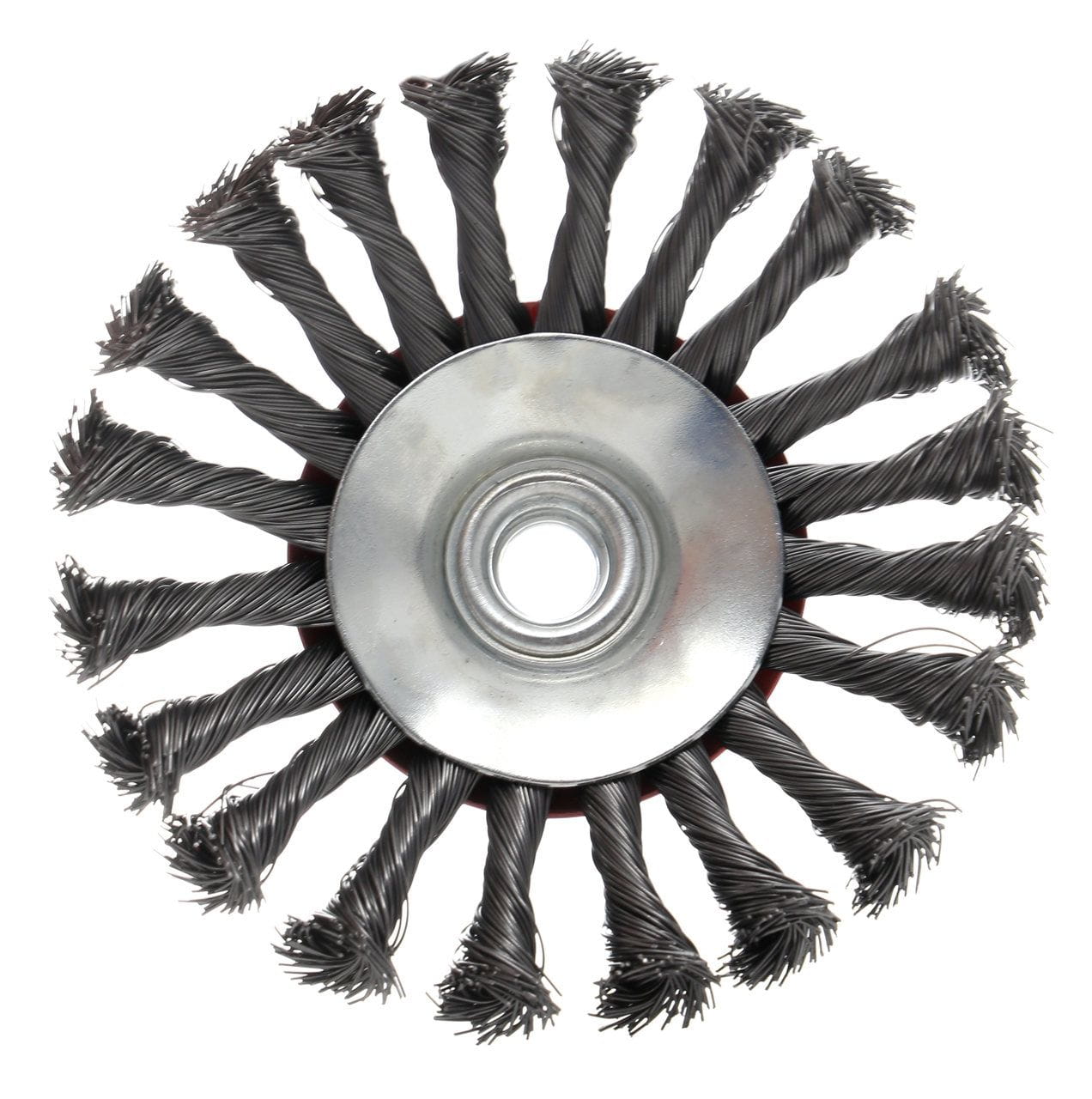 Druciana szczotka tarczowa typu bocznego z plecionym włosiem, przeznaczona do montażu na szlifierkach kątowych z wrzecionem M14. Stosowana do mechanicznego oczyszczania powierzchni metalowych — usuwania rdzy, starych powłok, zgorzeliny spawalniczej oraz innych zanieczyszczeń powierzchniowych.