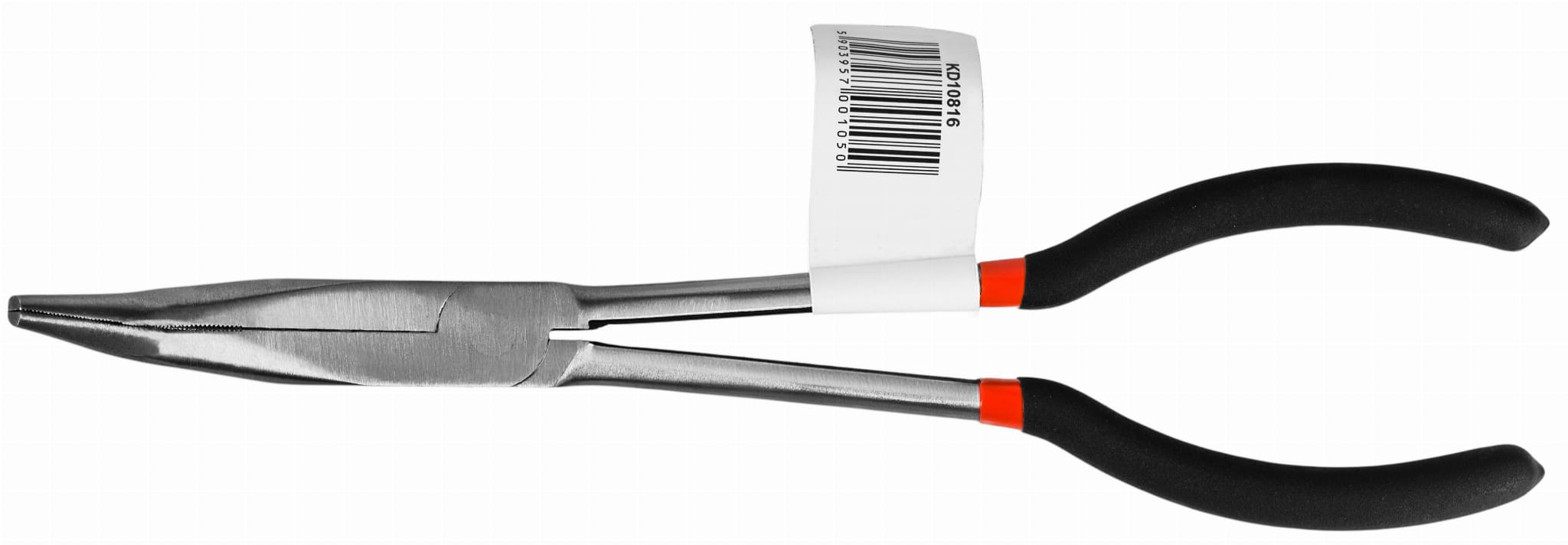 Szczypce z końcówkami wygiętymi pod kątem 45° przeznaczone do pracy w miejscach o ograniczonym dostępie. Wykonane ze stali narzędziowej z ergonomicznymi uchwytami pokrytymi antypoślizgową gumą. Masa narzędzia wynosi 0,27 kg, co minimalizuje zmęczenie przy dłuższej pracy.
