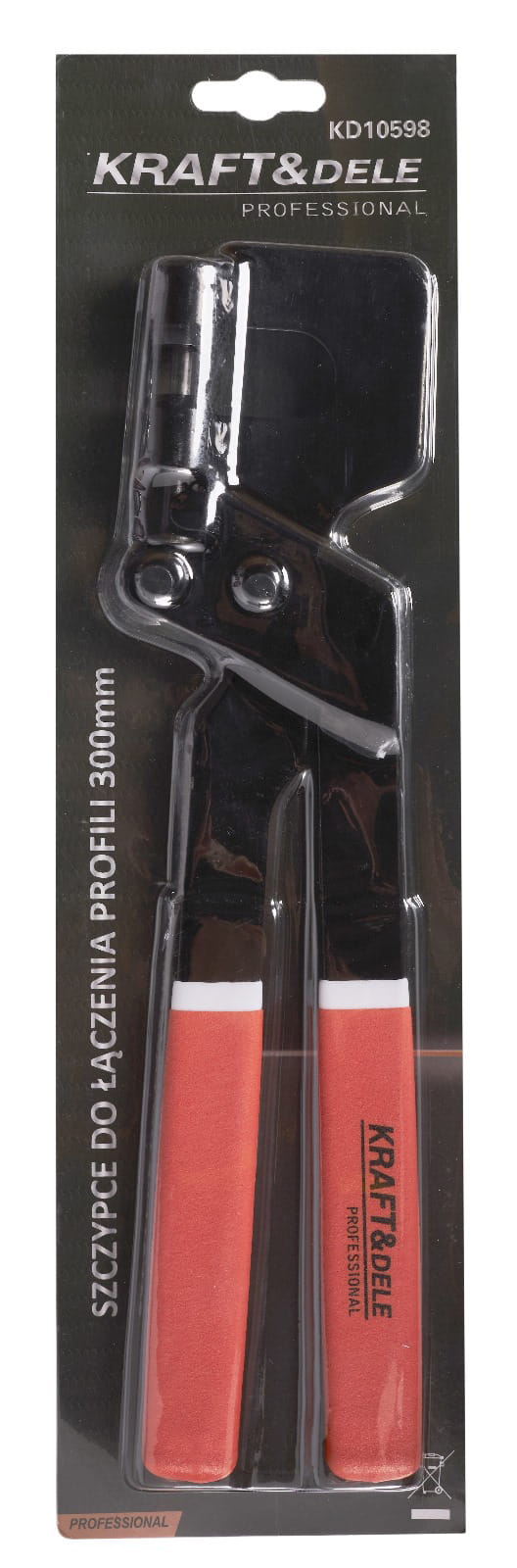 Ręczne szczypce przeznaczone do mechanicznego łączenia stalowych profili konstrukcyjnych stosowanych w systemach zabudów gipsowo-kartonowych. Narzędzie ręczne o długości 300 mm, umożliwiające trwałe zakleszczenie profili bez użycia dodatkowych elementów złącznych, takich jak wkręty czy nity.