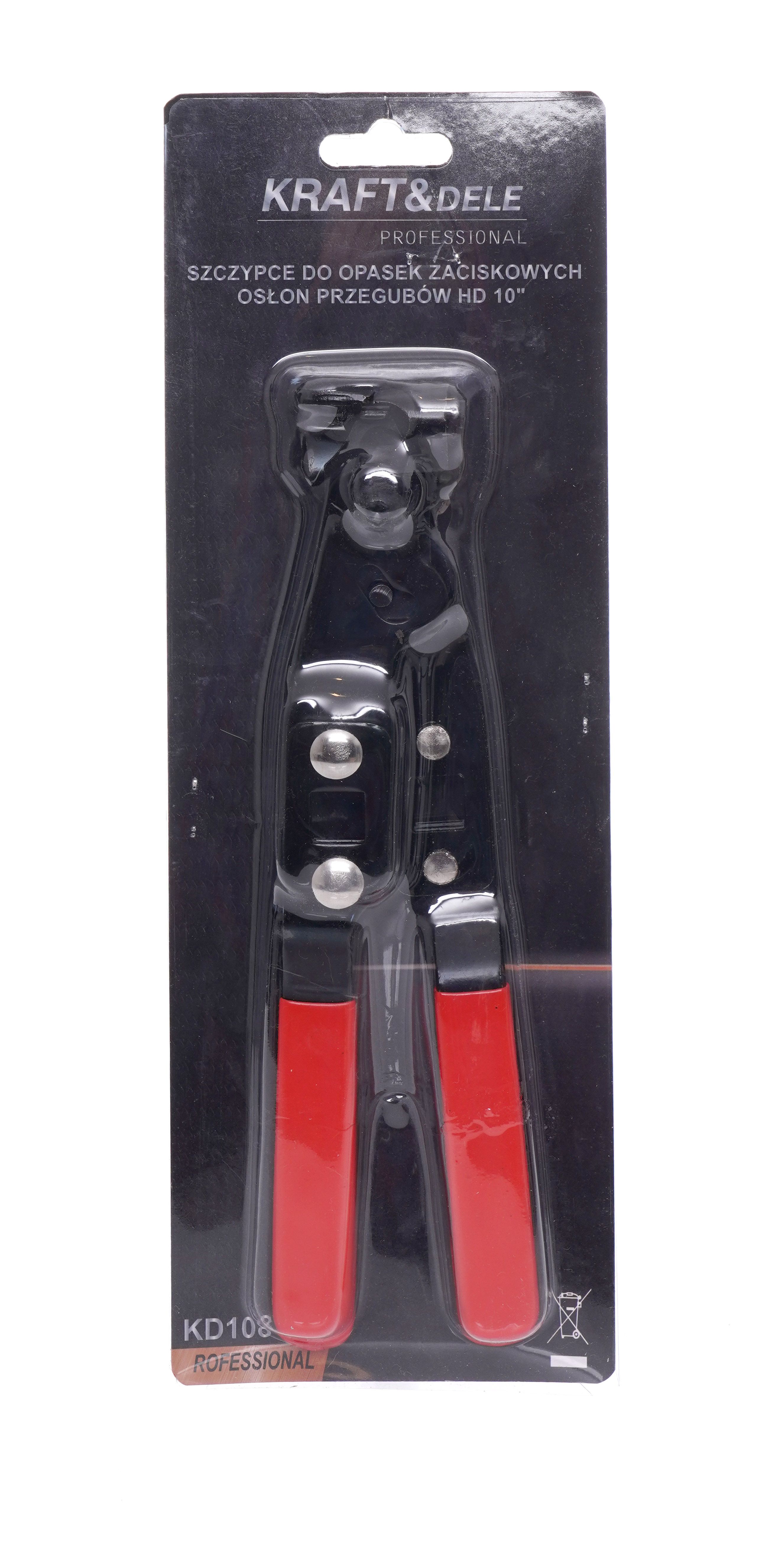 Szczypce do opasek zaciskowych KD10810 to praktyczne narzędzie do pracy z opaskami przy osłonach przegubów, przydatne w garażu i warsztacie. Model KD10810 marki KRAFT&DELE ułatwia pewne zaciskanie twardych opasek oraz pracę przy zabezpieczeniach pierścieniowych w samochodach osobowych.