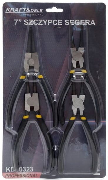 KD10322 to zestaw czterech szczypiec Segera o rozmiarze 6 cali, przeznaczonych do montażu i demontażu pierścieni zabezpieczających. Komplet obejmuje wszystkie podstawowe warianty narzędzia, umożliwiając pracę zarówno z pierścieniami wewnętrznymi, jak i zewnętrznymi, również w miejscach o ograniczonym dostępie.