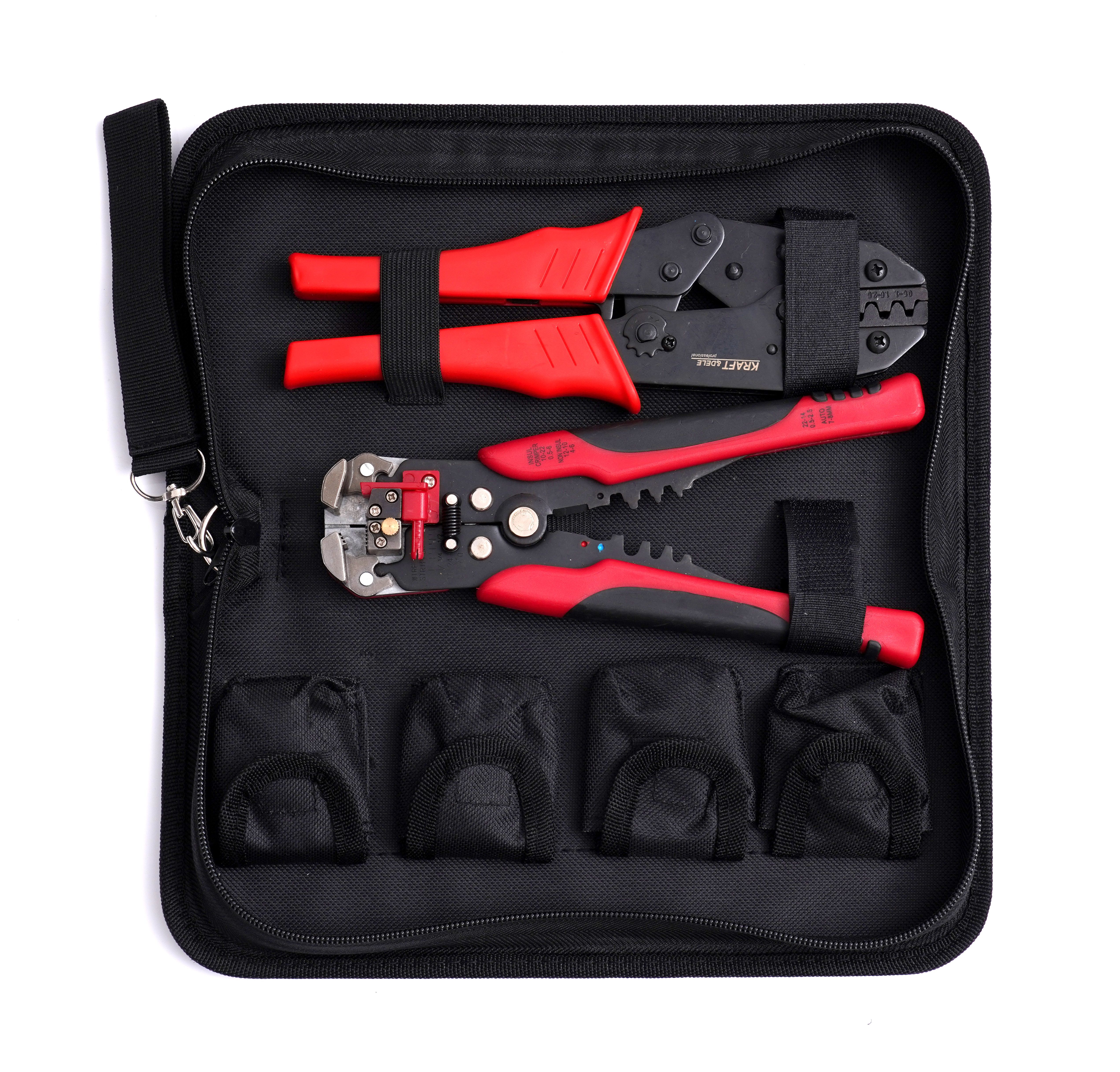 Szczypce/zaciskarka konektorów - matryce + etui KD10693 / KD10693 / KRAFT&DELE to praktyczny wybór, jeśli zależy Ci na sprawnym przygotowaniu przewodu i powtarzalnym zaciskaniu konektorów. Model KD10693 łączy funkcje ściągania, cięcia i zaciskania, a dzięki etui łatwo utrzymać komplet w jednym miejscu.