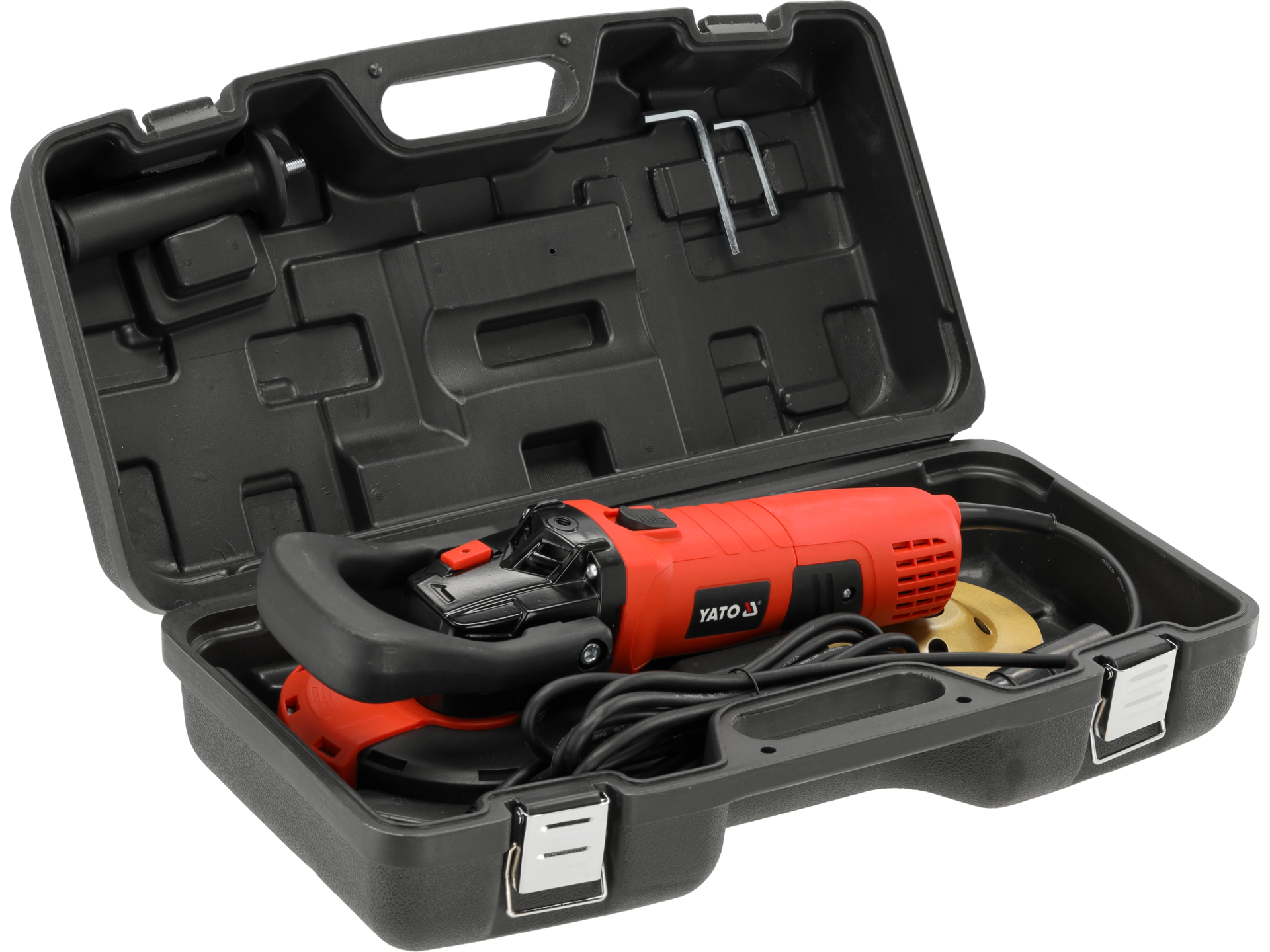Dodatkowe atuty to lekka konstrukcja o wadze 2,8 kg oraz długi, 3-metrowy przewód zasilający, który zapewnia swobodę ruchów. Klasa izolacji elektrycznej II oraz stopień ochrony IPX0 gwarantują bezpieczeństwo użytkowania. Szlifierka dostarczana jest w poręcznej walizce, co ułatwia transport i przechowywanie narzędzia. W zestawie znajdują się również rękojeść dodatkowa, osłona szlifierki, tarcza diamentowa oraz adapter odciągu pyłu.