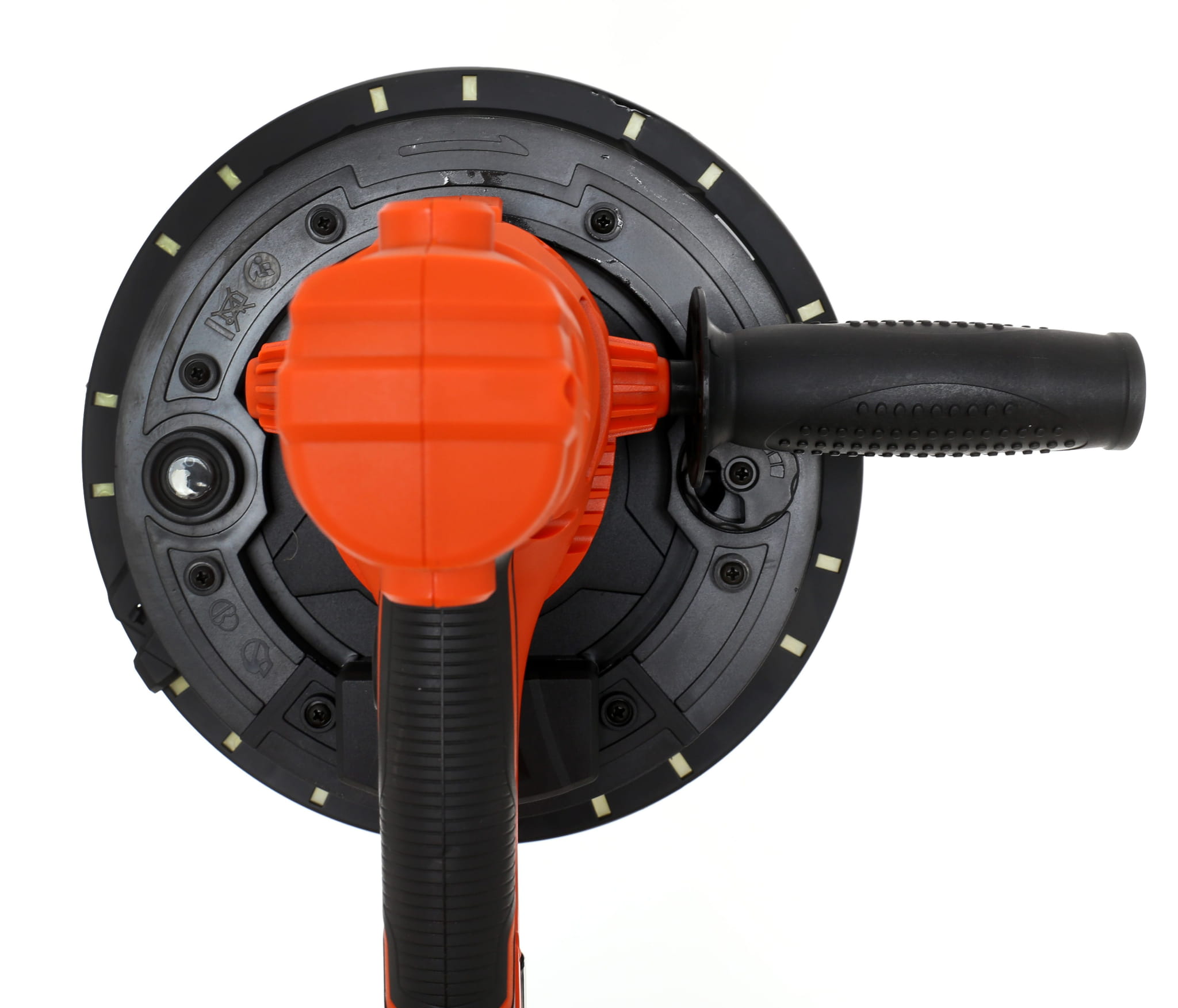 Pierścień diod LED umieszczony dookoła tarczy oświetla bezpośrednio szlifowaną powierzchnię. Eliminuje konieczność korzystania z dodatkowego oświetlenia roboczego, co ma znaczenie szczególnie przy pracy na sufitach i w narożnikach o ograniczonym dostępie światła.