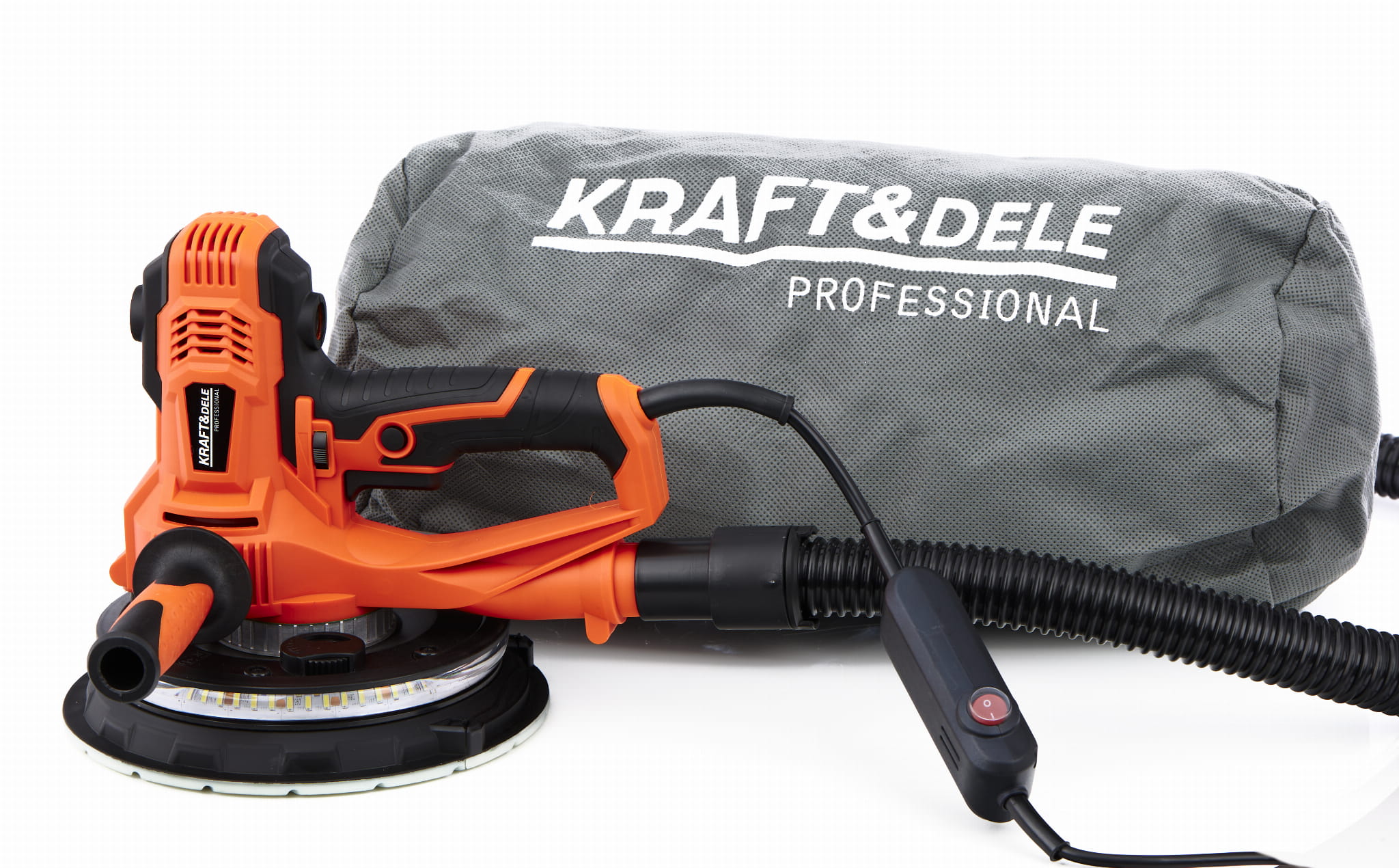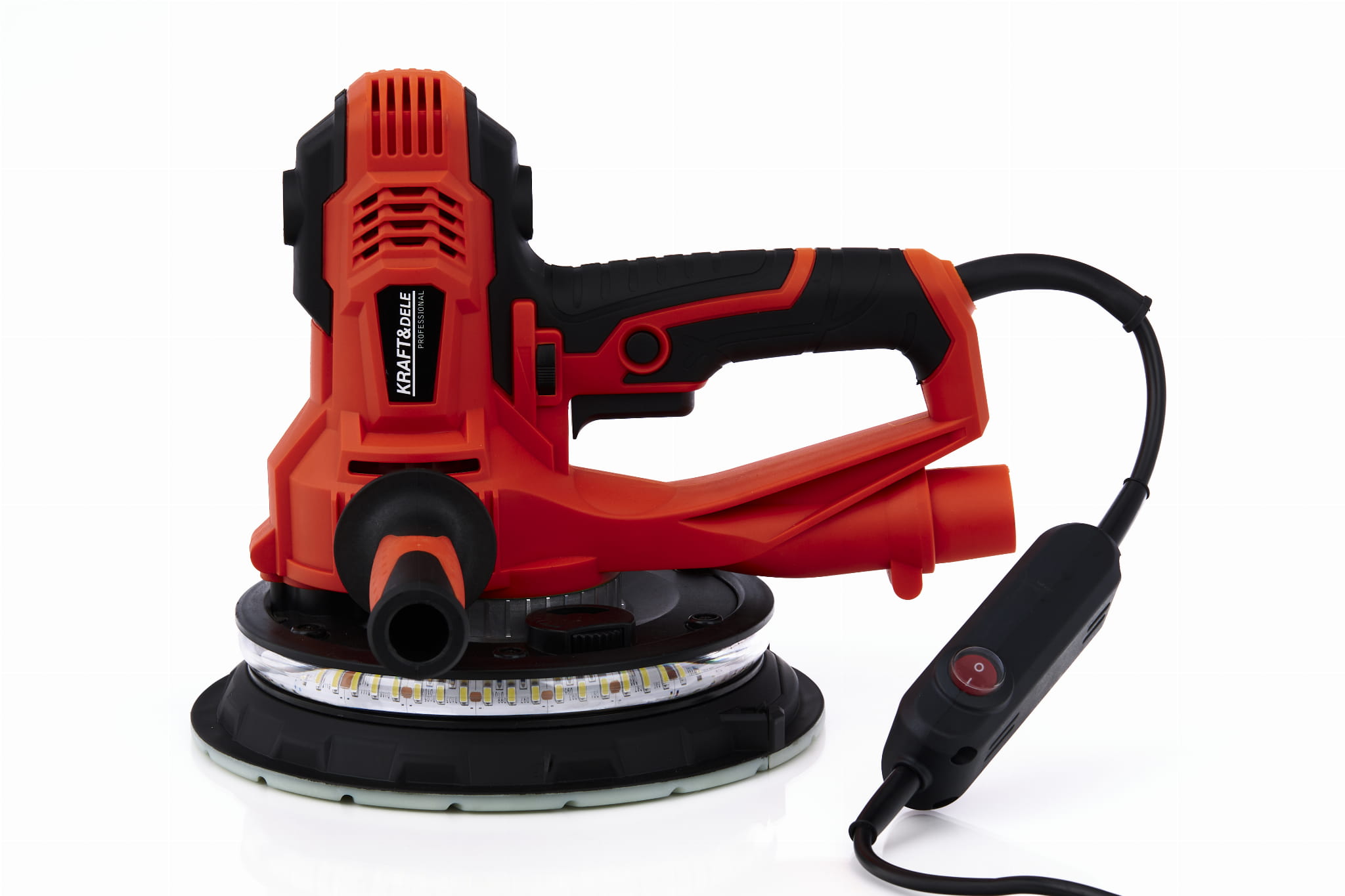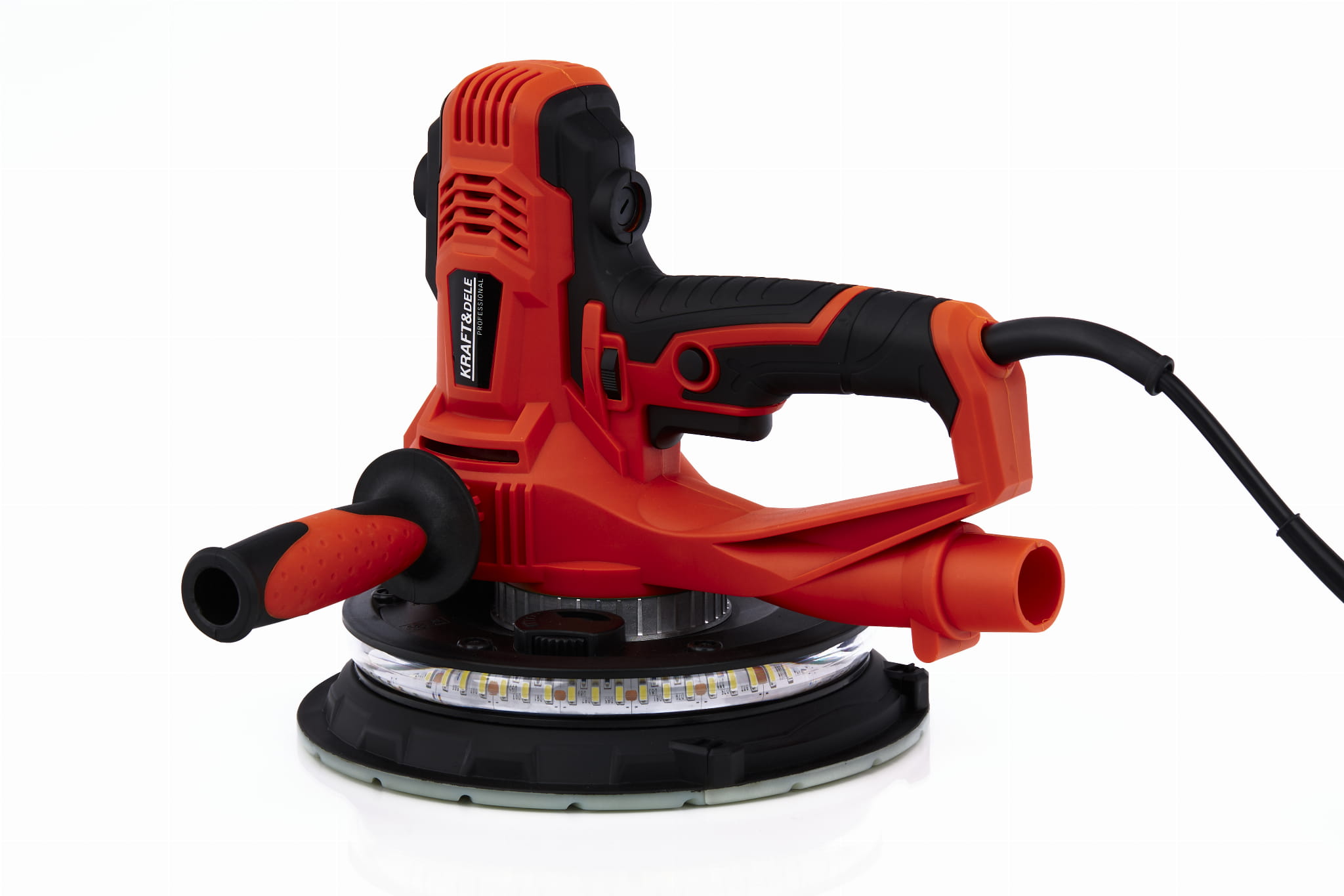KraftDele KD3132 to szlifierka teleskopowa przeznaczona do mechanicznego szlifowania ścian i sufitów pokrytych gipsem, tynkiem lub masą szpachlową. Okrągła głowica o średnicy 180 mm z regulowaną prędkością obrotową oraz wbudowane oświetlenie LED umożliwiają pracę w różnych warunkach oświetleniowych, w tym w pomieszczeniach bez okien lub przy słabym świetle.