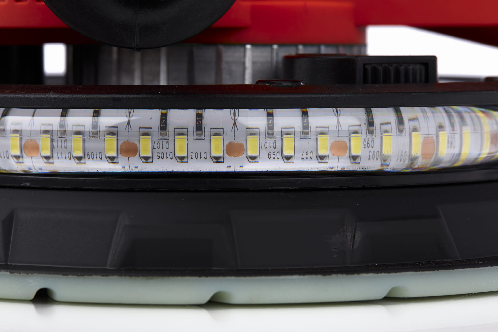 Oświetlenie zamontowane przy głowicy szlifującej doświetla bezpośrednio obrabianą powierzchnię. Ułatwia wykrycie nierówności i niedoszlifowanych miejsc, które są trudne do zauważenia przy oświetleniu ogólnym pomieszczenia.