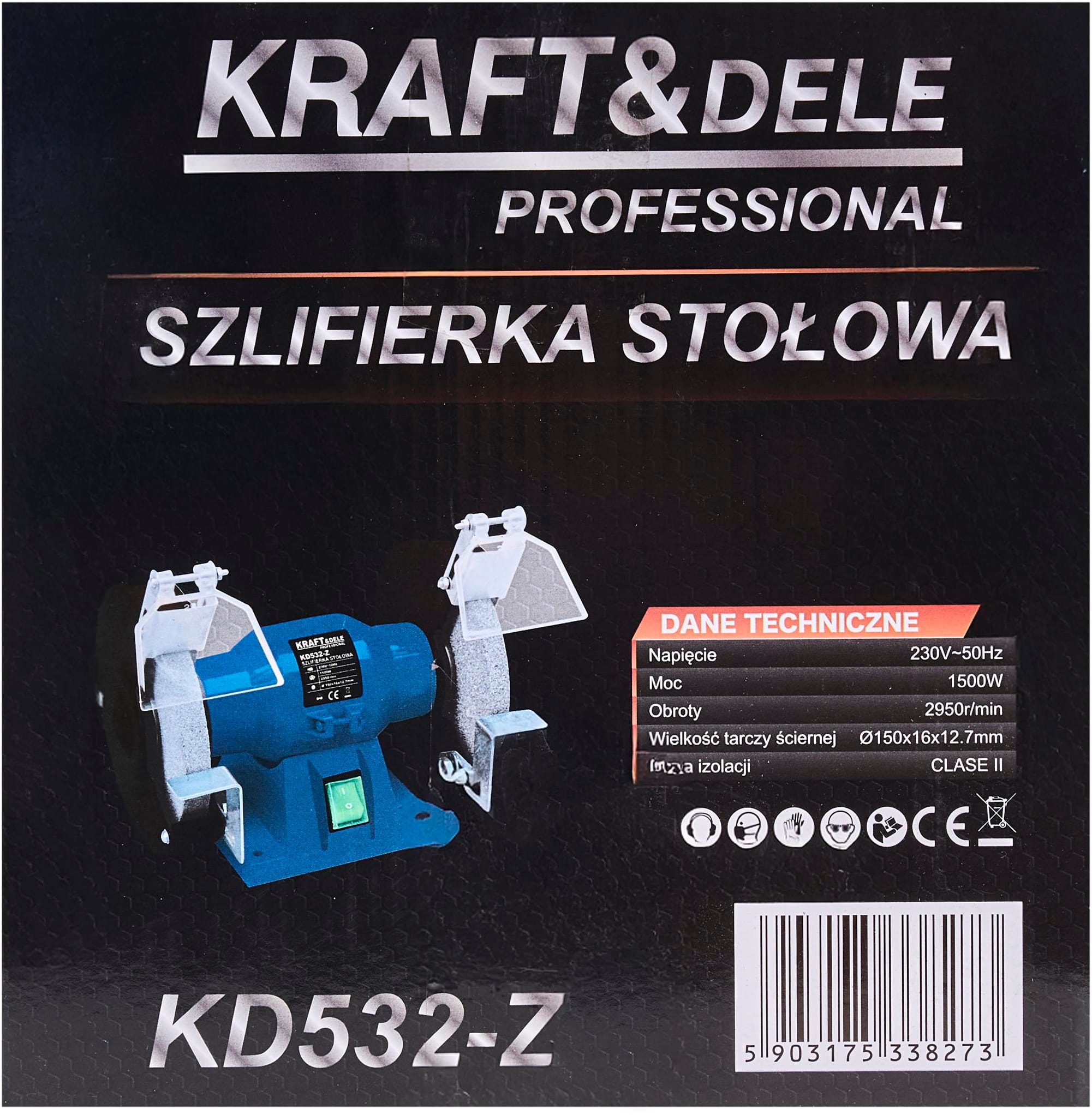 Szlifierka stołowa (kamieniówka) KD532-Z to urządzenie przeznaczone do pracy na sucho w zakresie szlifowania, ostrzenia i czyszczenia narzędzi tnących oraz metalowych elementów. Wyposażona w dwie tarcze ø150 mm i silnik o mocy 1500W, sprawdza się zarówno w warunkach warsztatowych, jak i podczas prac przydomowych.