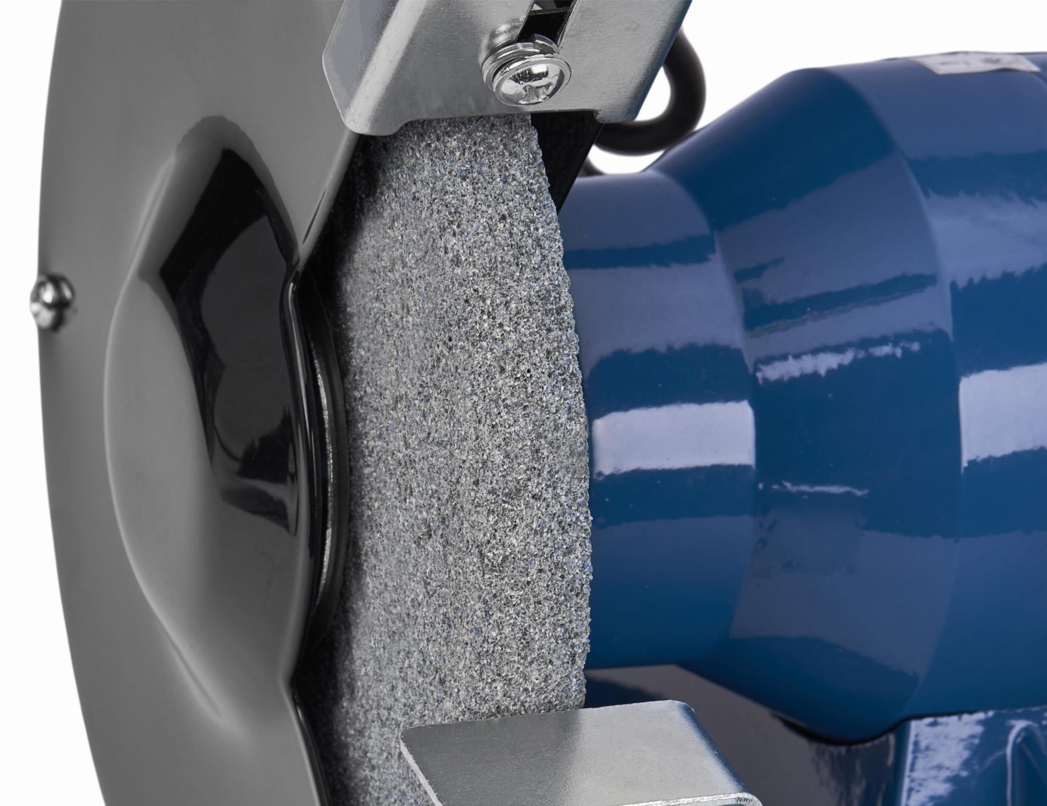 Szlifierka stołowa wymaga stabilnego montażu na blacie warsztatowym lub stole roboczym — waga 4,55 kg i układ dwóch tarcz generują wibracje, które przy pracy na niestabilnym podłożu mogą wpływać na dokładność szlifowania. Przed uruchomieniem należy sprawdzić stan tarcz pod kątem pęknięć i prawidłowe dokręcenie osłon ochronnych.
