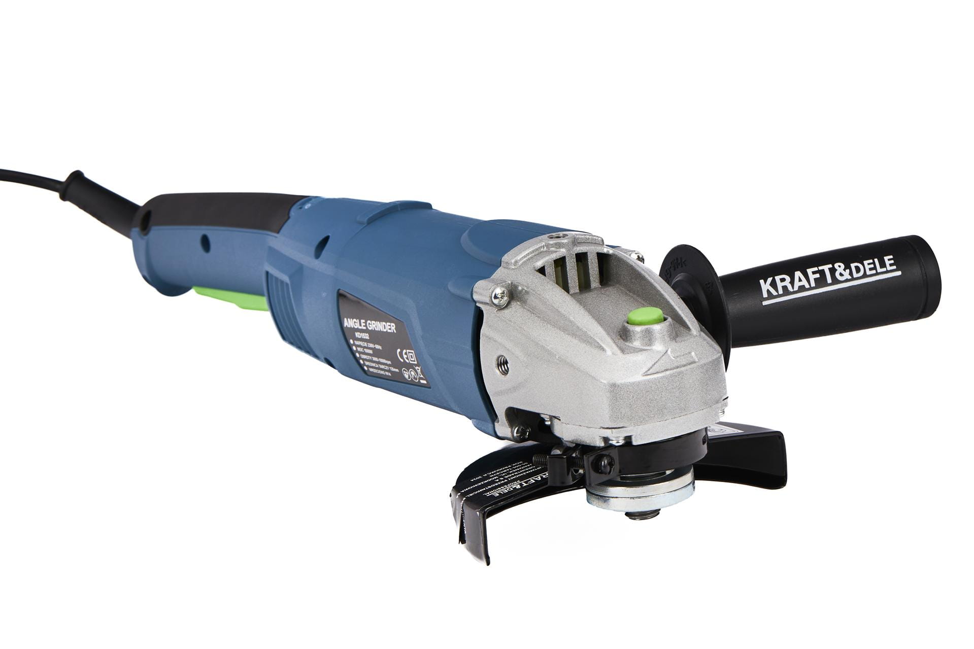 Szlifierka kątowa KD1532, rękojeść przednia, regulowana osłona tarczy tnącej, klucz do demontażu tarczy, instrukcja obsługi w języku polskim, deklaracja zgodności, oryginalne opakowanie. Zestaw nie zawiera tarczy tnącej — osprzęt należy dobrać oddzielnie zgodnie z planowanym zastosowaniem i rodzajem obrabianego materiału.