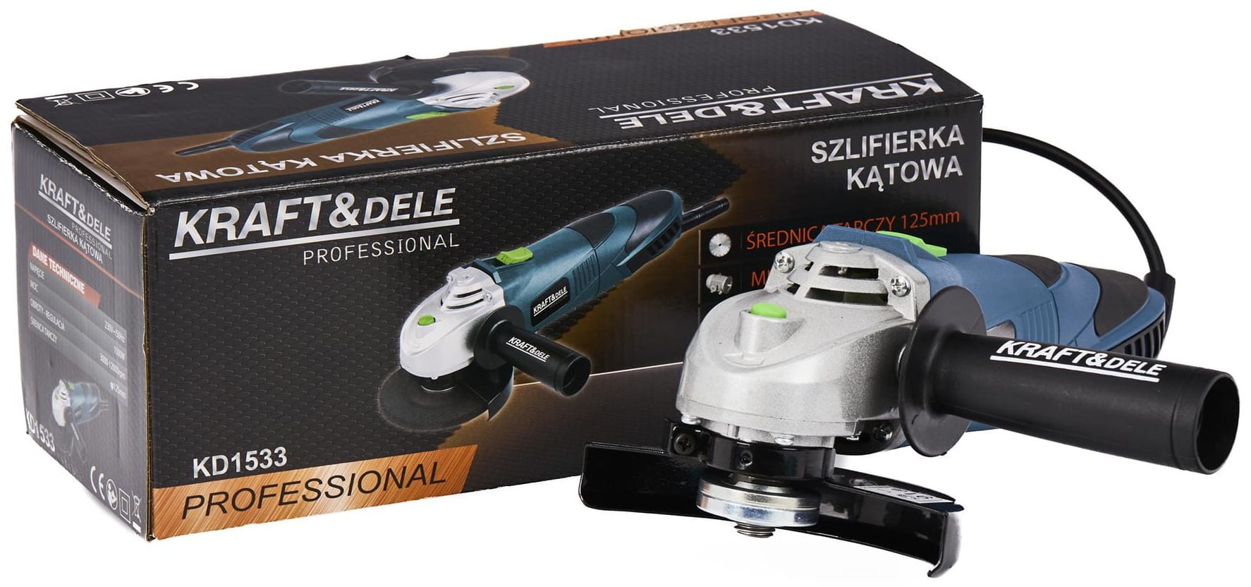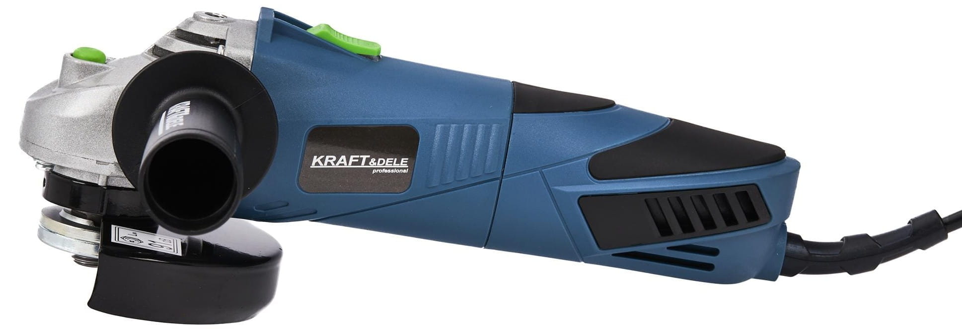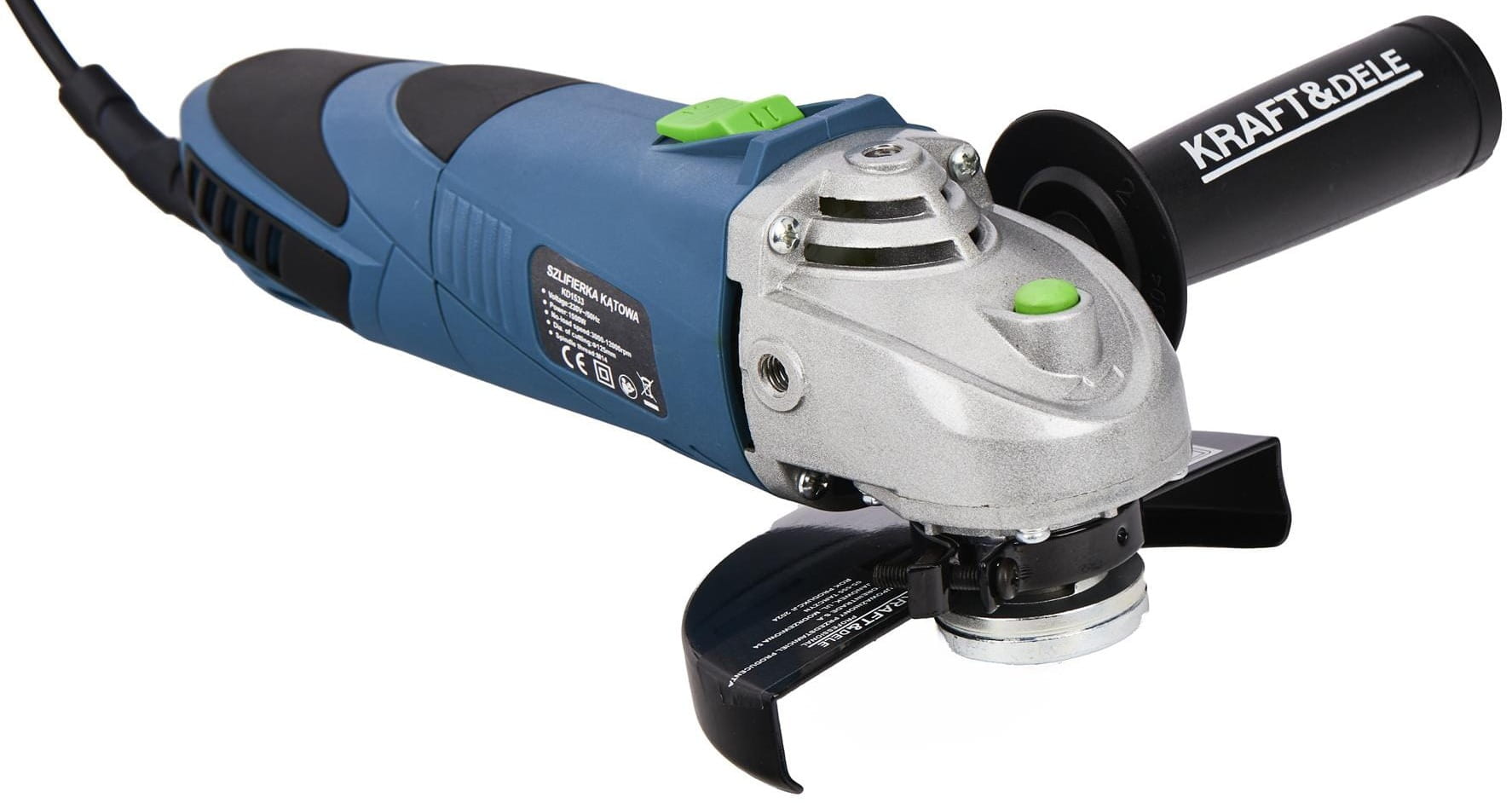 Antypoślizgowa rękojeść główna oraz dodatkowa rękojeść montowana w trzech pozycjach (0°, 90°, 180°) umożliwiają dostosowanie chwytu do kąta pracy. Regulowana osłona tarczy kieruje odpryski w stronę przeciwną do operatora.