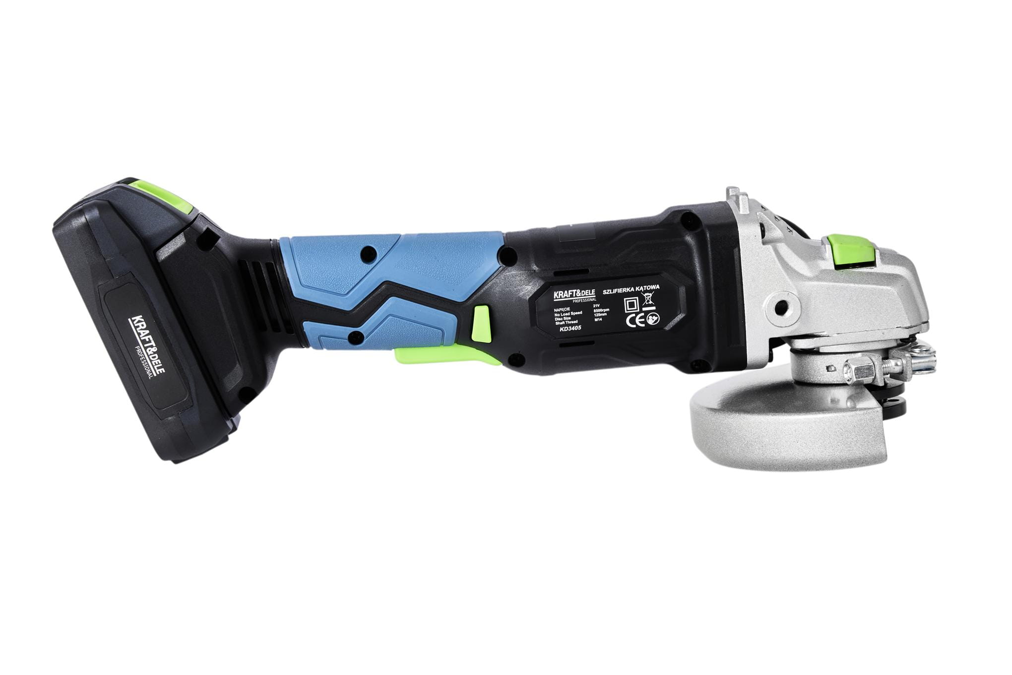 Szlifierka kątowa akumulatorowa KD3405 • 2 akumulatory 21V / 3000mAh • Ładowarka • Akcesoria • Walizka transportowa • Dokument zakupu (paragon lub faktura)