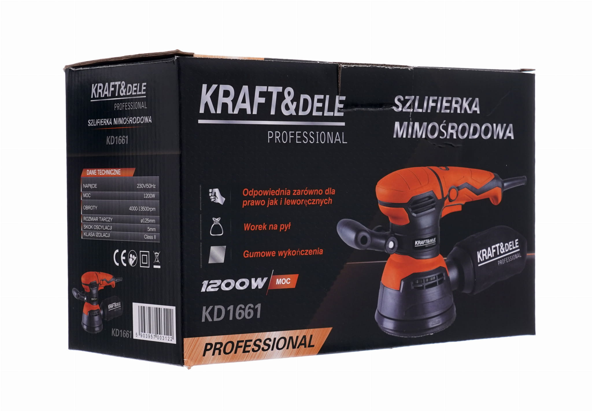 Szlifierka mimośrodowa KD1661, worek na pył, instrukcja obsługi w języku polskim, dokument zakupu (paragon lub faktura VAT), gwarancja 12 miesięcy.