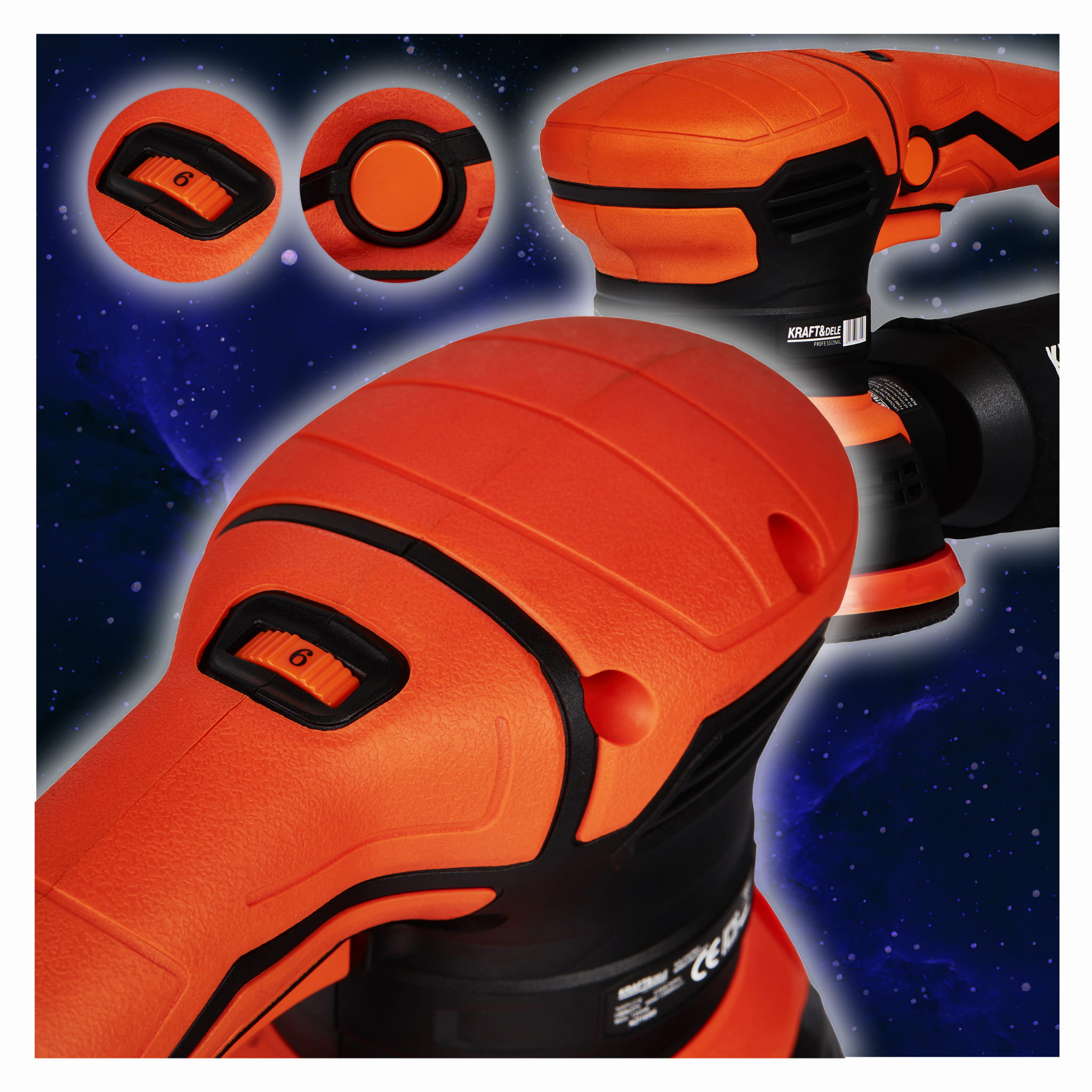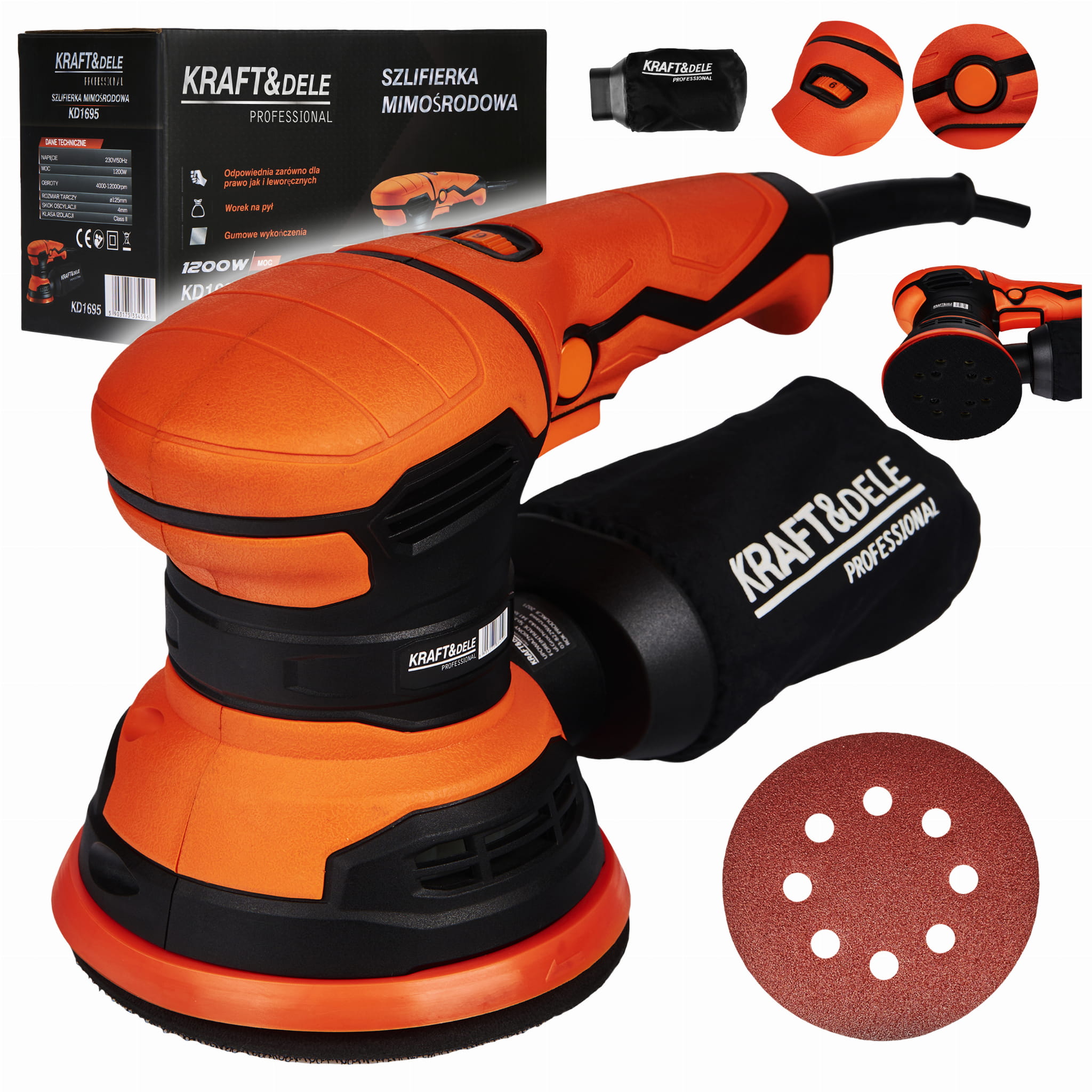 Szlifierka mimośrodowa KD1695 to elektryczne narzędzie ścierne z tarczą 125 mm, przeznaczone do szlifowania i polerowania drewna, metalu, tynku oraz tworzyw sztucznych. Regulowany zakres obrotów pozwala dostosować prędkość pracy do rodzaju obrabianego materiału i wykonywanej operacji.