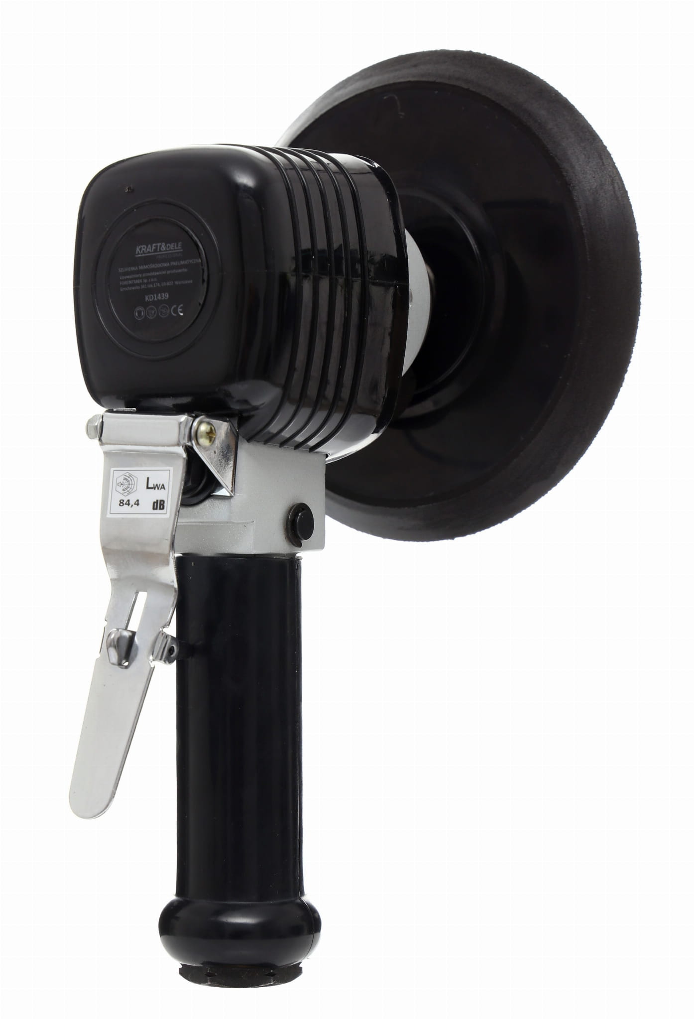 KD1439 to pneumatyczna szlifierka mimośrodowa (orbitalna) przeznaczona do szlifowania powierzchni płaskich w warunkach profesjonalnych. Zasilana sprężonym powietrzem, pracuje z prędkością do 10 000 obr/min przy ciśnieniu roboczym 6,3 bar. Mimośrodowy ruch tarczy 150 mm minimalizuje powstawanie śladów szlifowania i umożliwia uzyskanie równomiernej faktury powierzchni.
