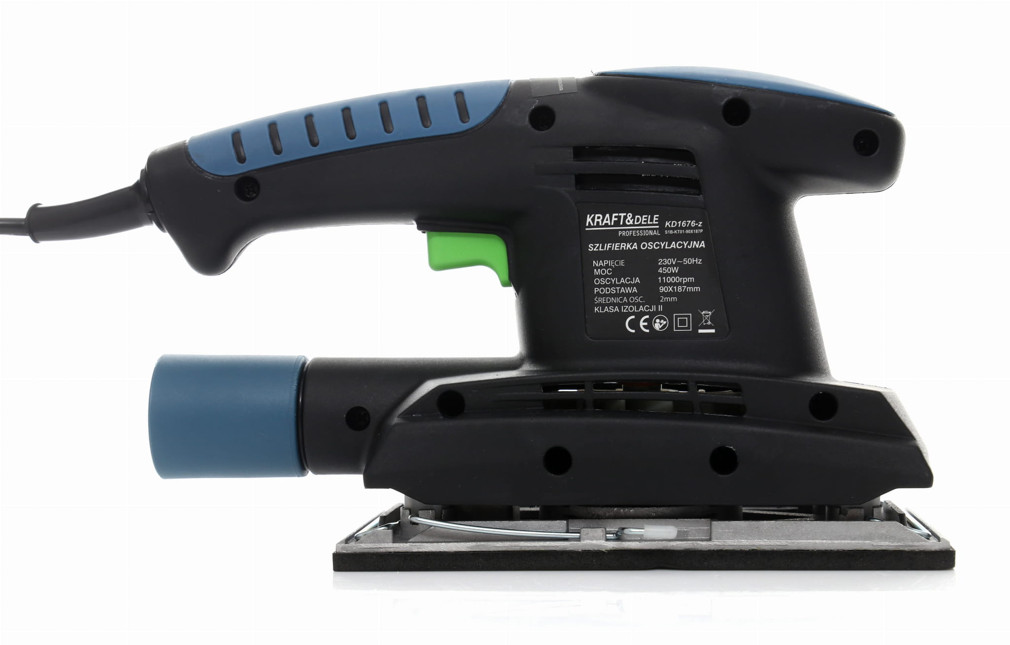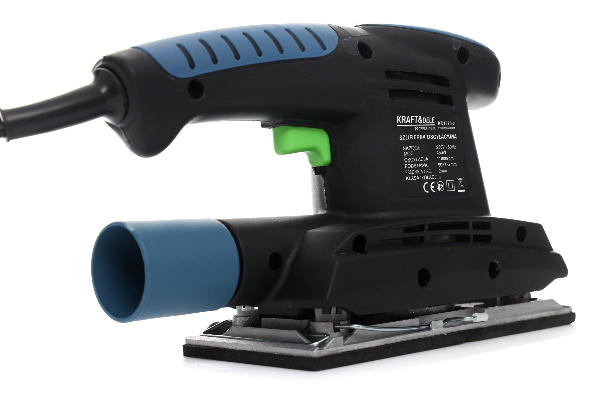 Elektryczna szlifierka oscylacyjna zasilana sieciowo, przeznaczona do szlifowania i polerowania płaskich powierzchni na sucho. Współpracuje z drewnem, metalem, tynkiem oraz tworzywami sztucznymi — zarówno w zastosowaniach warsztatowych, jak i przy pracach remontowych.