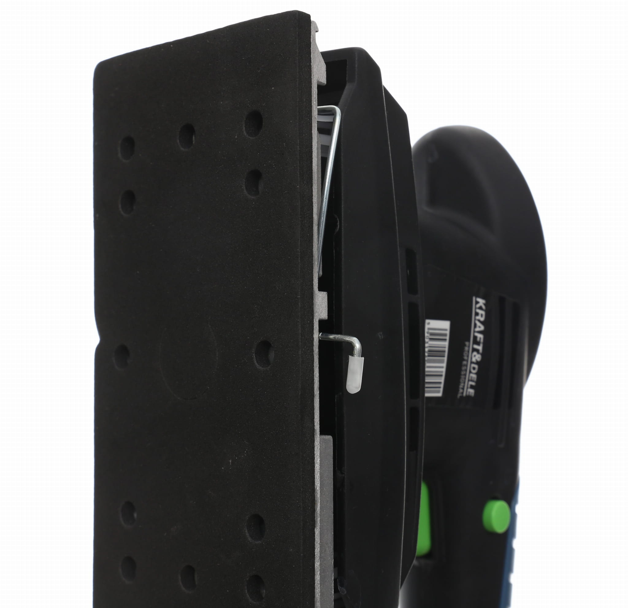 Urządzenie wyposażone jest w gniazdo umożliwiające podłączenie zewnętrznego odkurzacza. Odprowadzanie pyłu bezpośrednio podczas pracy ogranicza zapylenie stanowiska i wydłuża żywotność papieru ściernego przez zapobieganie jego zatykaniu.
