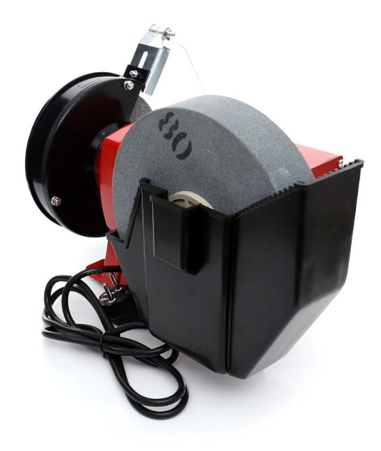 Montaż na stole zapewnia stały punkt pracy i możliwość prowadzenia narzędzia oburącz. Waga 8,4 kg i sztywna obudowa ograniczają drgania podczas pracy, co przekłada się na powtarzalność kąta szlifowania — istotną przy ostrzeniu dłut, noży czy wierteł.