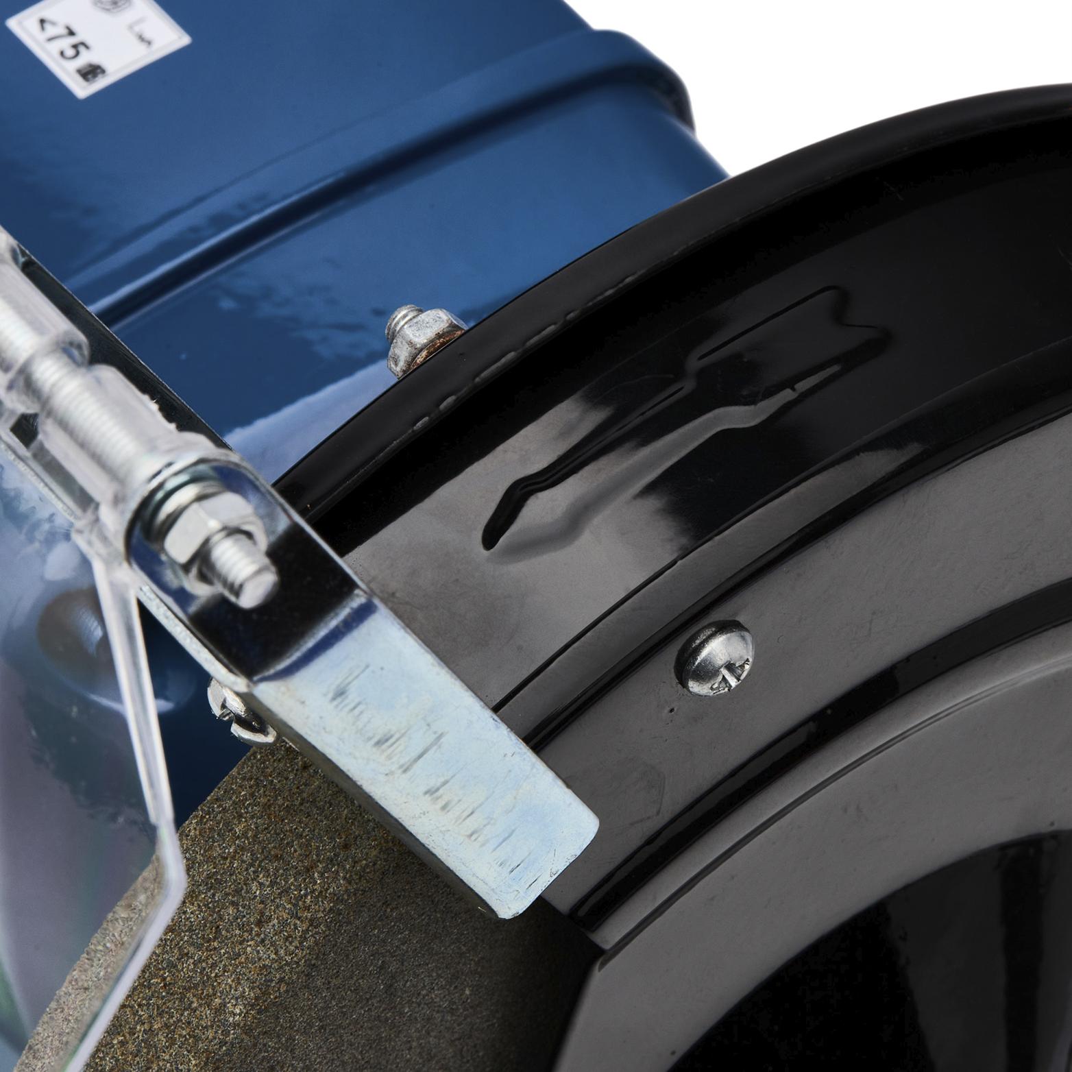 Szlifierka stołowa BESTCRAFT KD533-Z, 2 kamienie szlifierskie, 2 osłony, 2 podpory narzędziowe, osłony ochronne, instrukcja obsługi, oryginalne opakowanie.