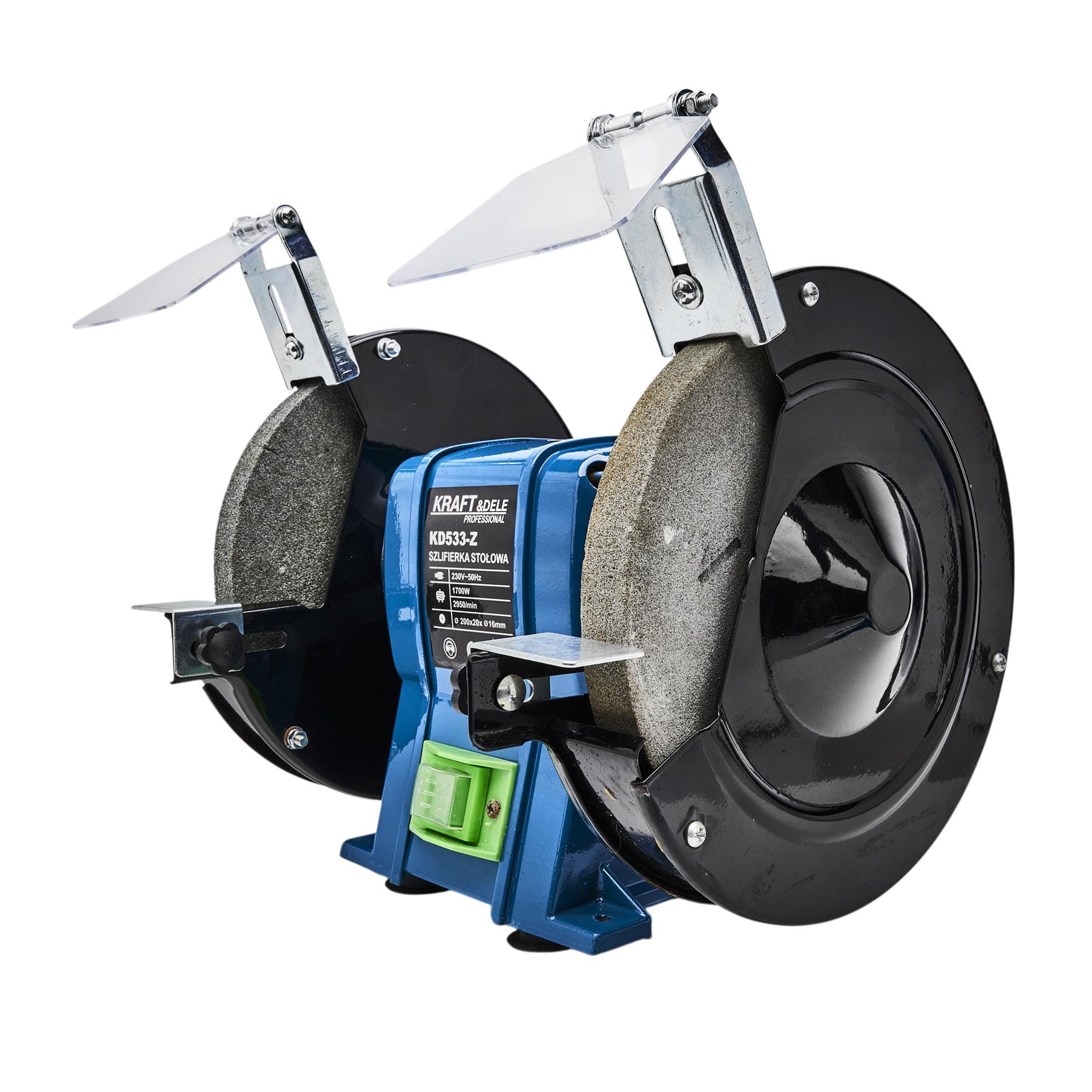 KD533-Z to elektryczna szlifierka stołowa przeznaczona do pracy na sucho, wyposażona w dwie tarcze kamienne o średnicy 200 mm. Urządzenie służy do szlifowania, ostrzenia i czyszczenia narzędzi metalowych w warunkach warsztatowych oraz przydomowych.