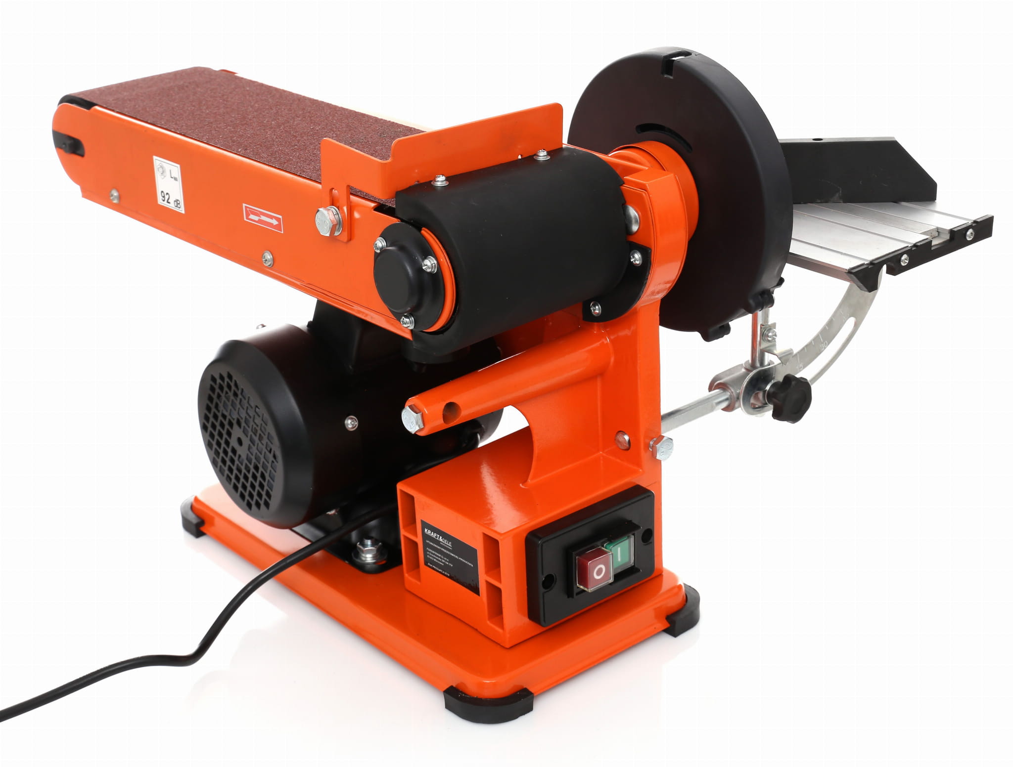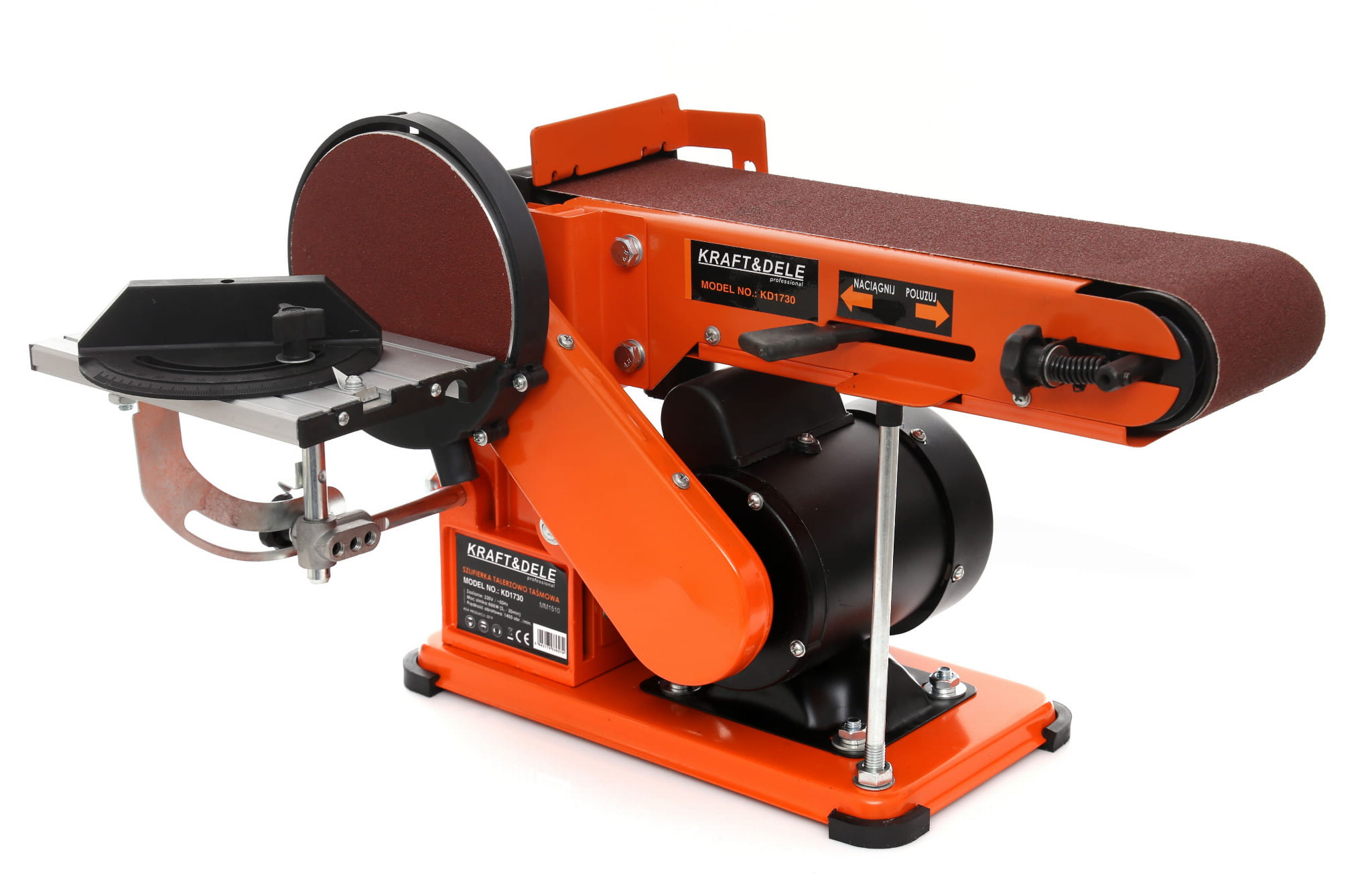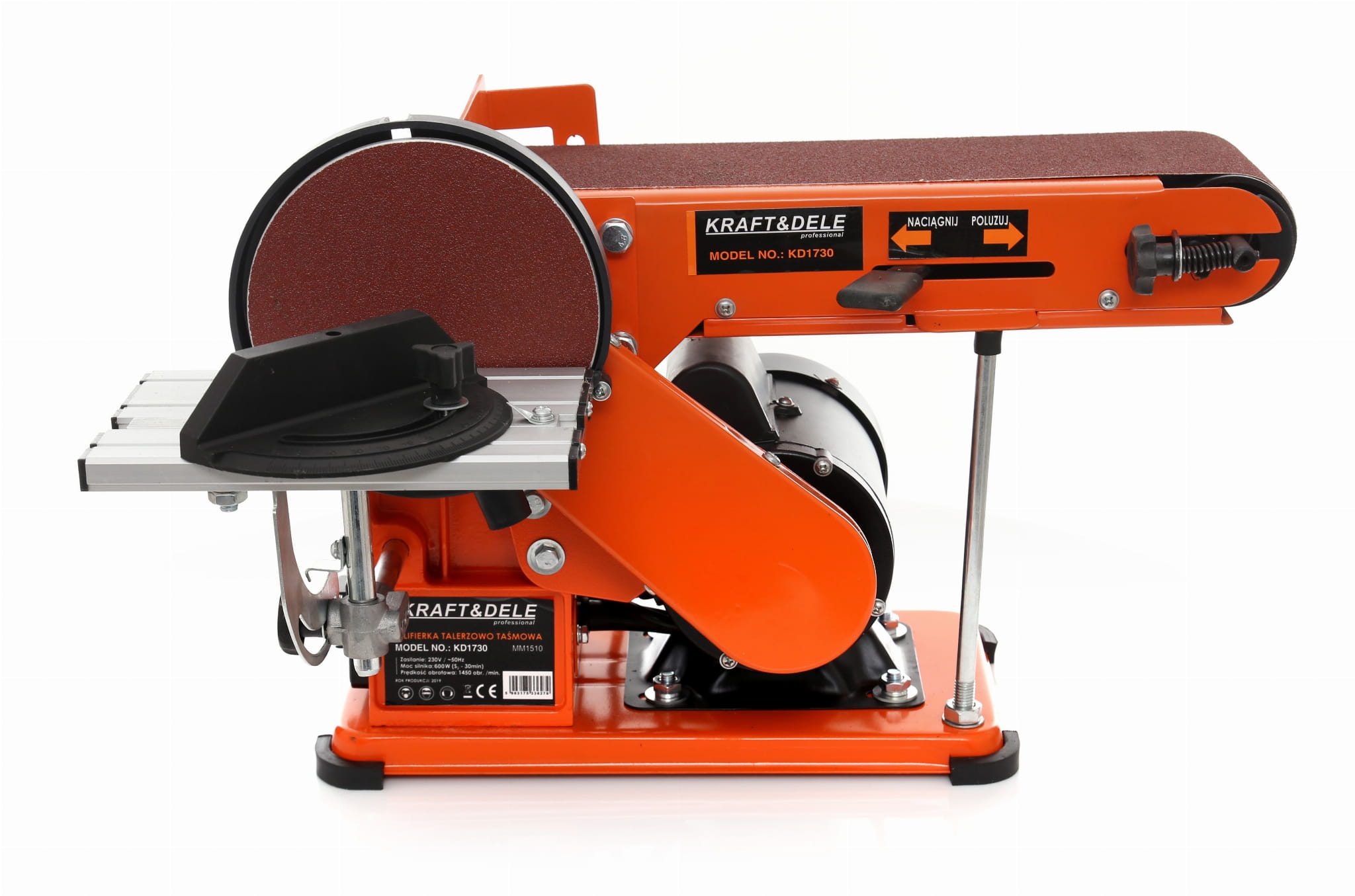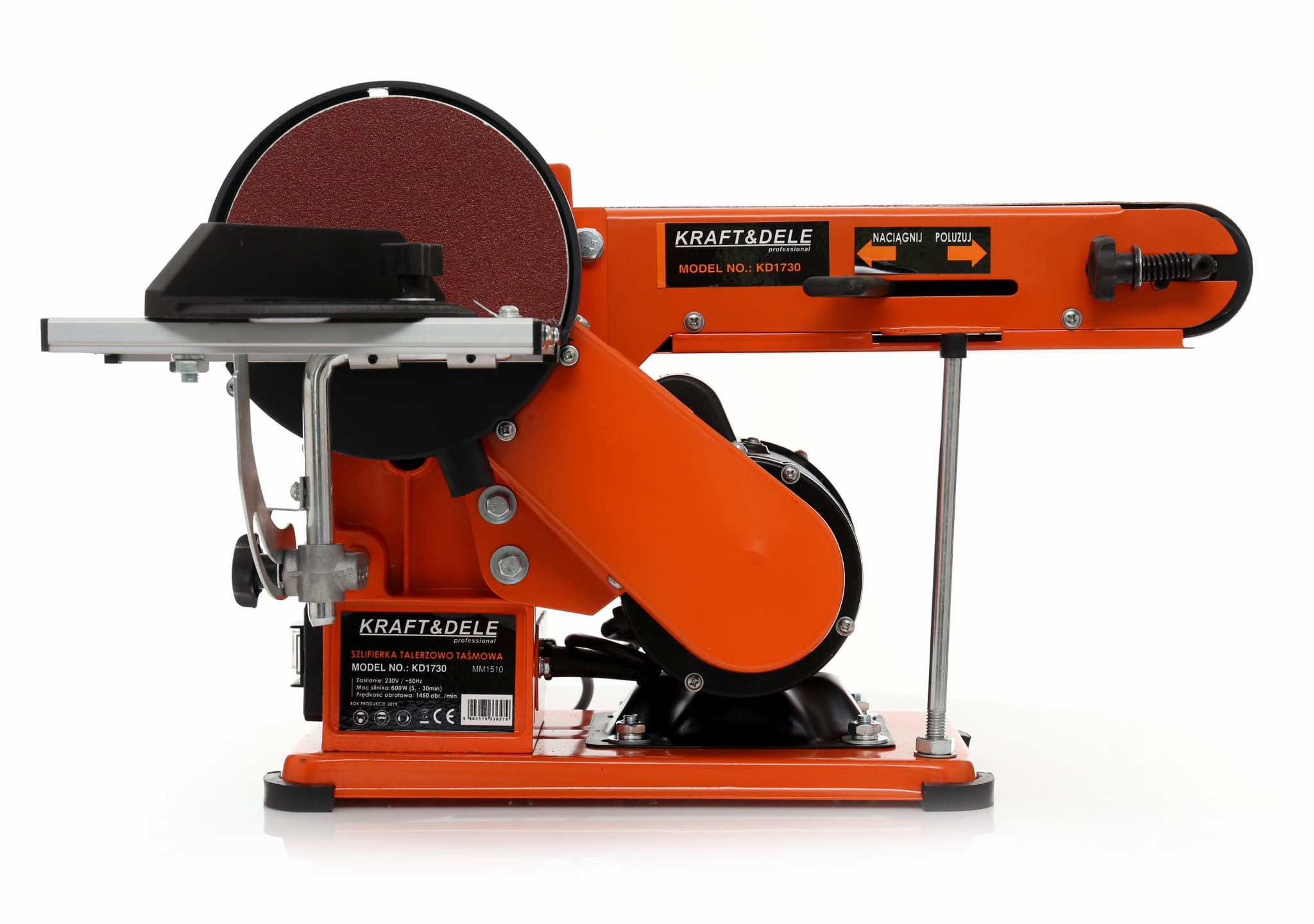 KD1730 to stacjonarna szlifierka kombinowana wyposażona jednocześnie w moduł taśmowy (taśma 100×914 mm) oraz moduł talerzowy (tarcza 150 mm). Urządzenie przeznaczone do szlifowania drewna na sucho — umożliwia obróbkę wzdłużną, poprzeczną i skośną elementów w warunkach przydomowego warsztatu.