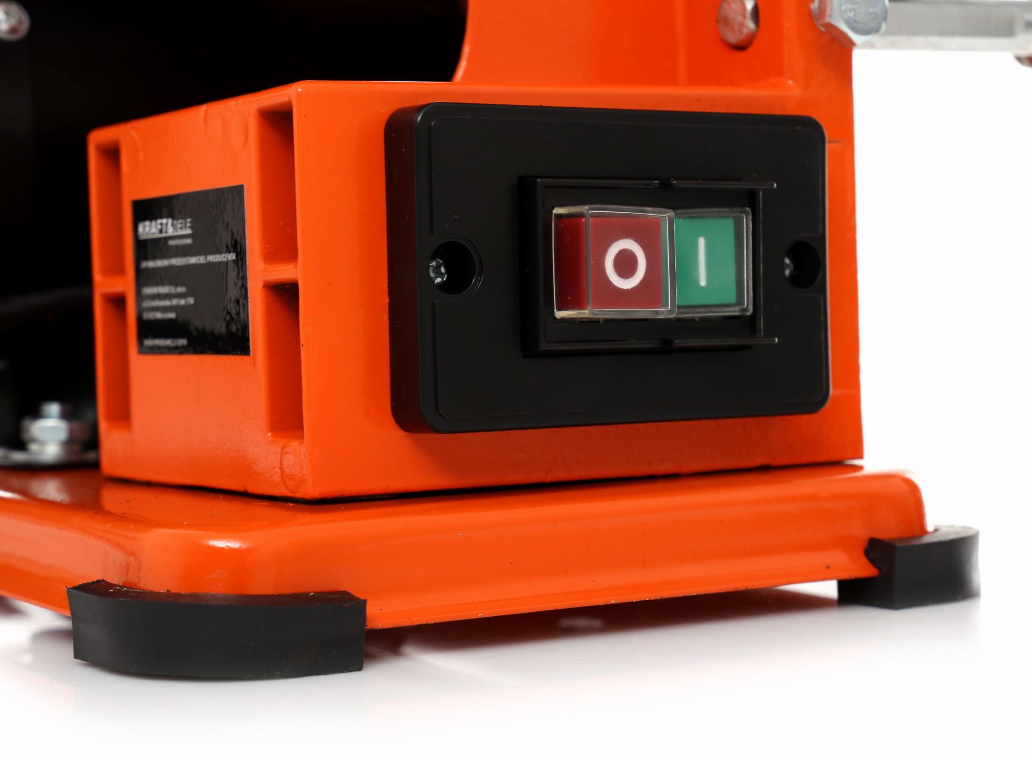 Urządzenie waży 12 kg, co umożliwia jego przenoszenie między stanowiskami. Otwory montażowe w podstawie pozwalają przykręcić szlifierkę do stołu warsztatowego, eliminując drgania i przesuwanie się maszyny podczas pracy.