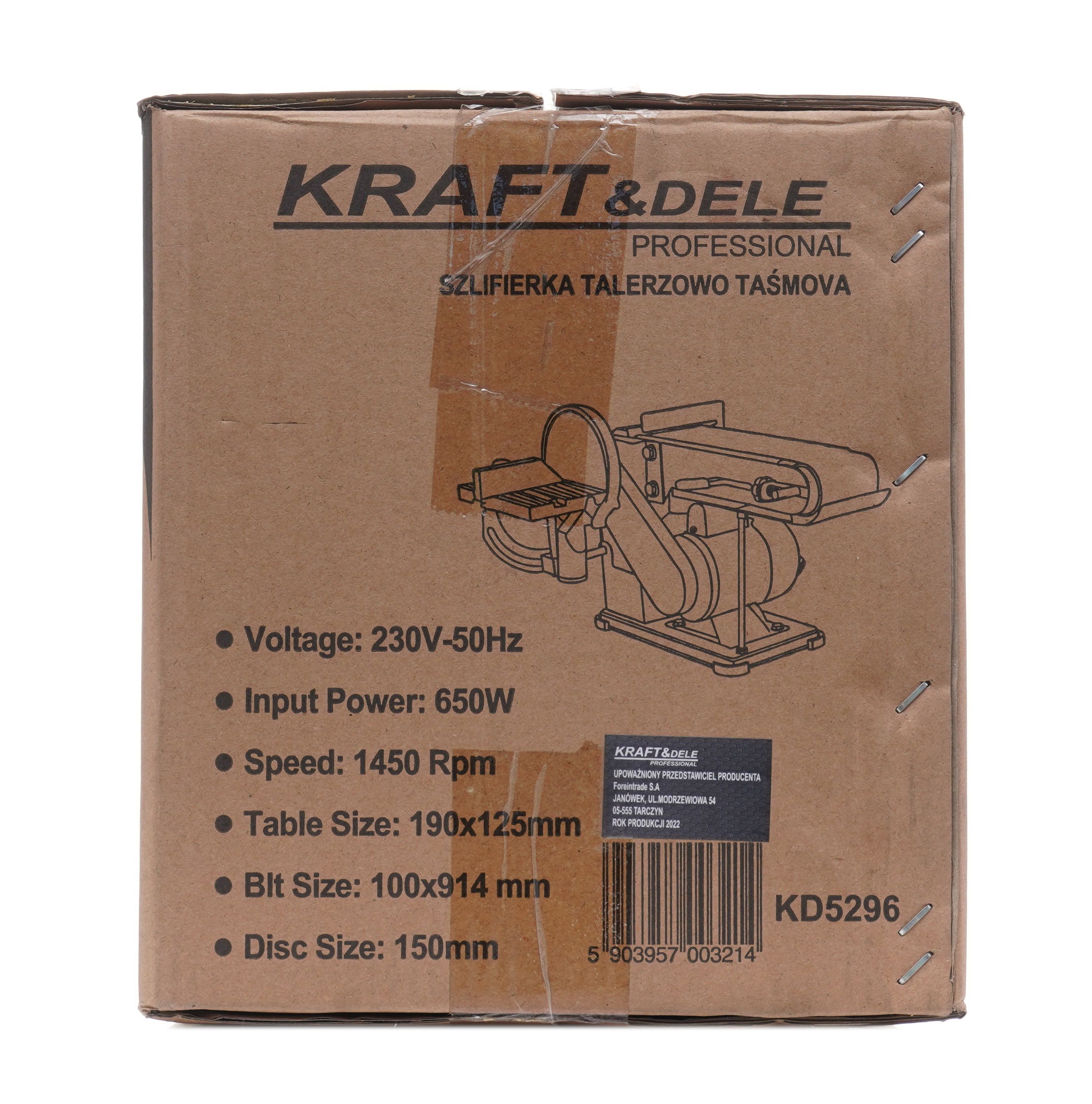 SZLIFIERKA TALERZOWO-TAŚMOWA 650W KD5296 / KD5296 / KRAFT&DELE to praktyczne narzędzie do precyzyjnego szlifowania drewna, metalu i materiałów syntetycznych, z regulacją stołów ułatwiającą pracę pod kątem. Jeśli szukasz urządzenia, które łączy stabilną konstrukcję z elastycznymi ustawieniami, szlifierka talerzowo-taśmowa KD5296 będzie rozsądnym wyborem do warsztatu.