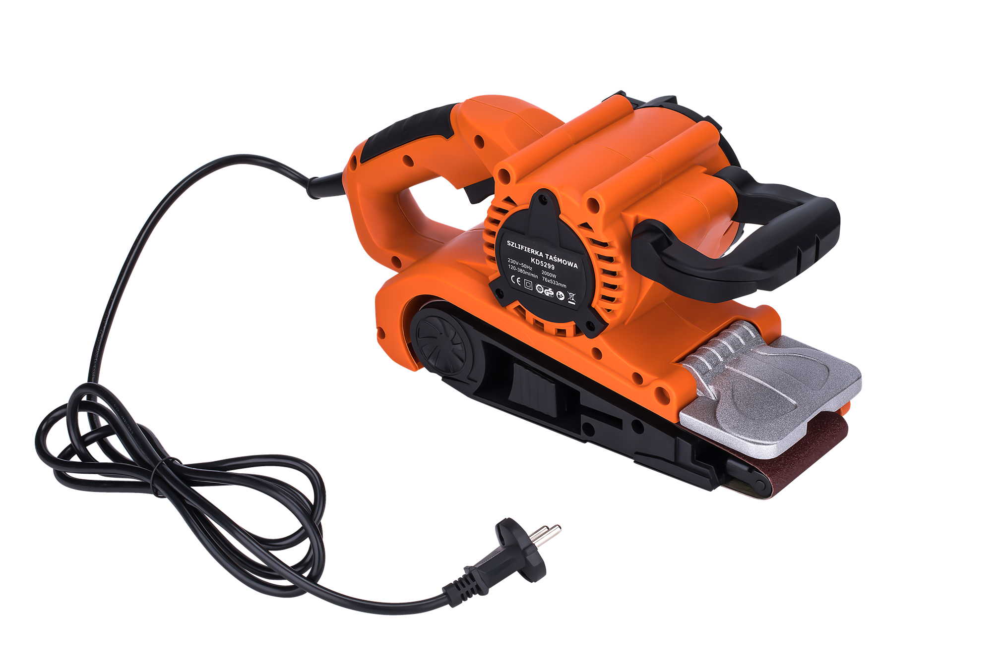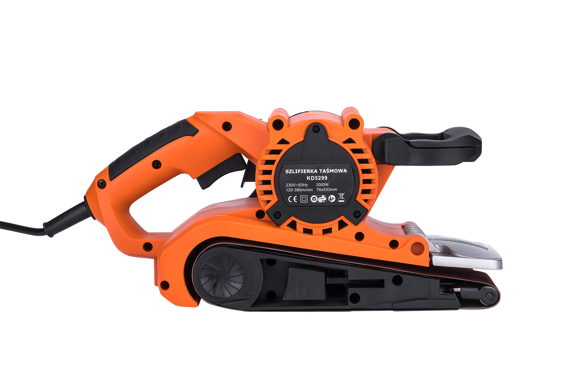 Elektryczna szlifierka taśmowa przeznaczona do szlifowania i polerowania dużych płaskich powierzchni z drewna, płyt kompozytowych i innych materiałów. Moc 2000W oraz regulowana prędkość taśmy umożliwiają pracę zarówno przy obróbce wstępnej, jak i wykańczaniu powierzchni.