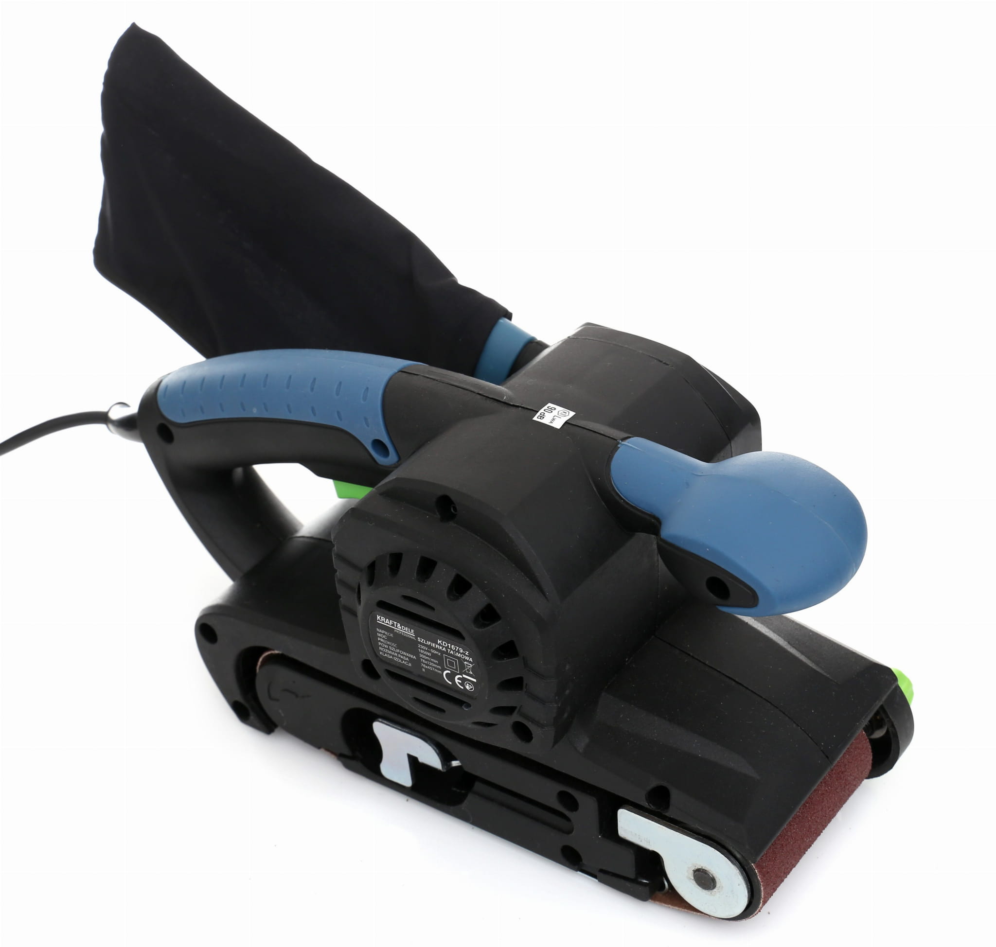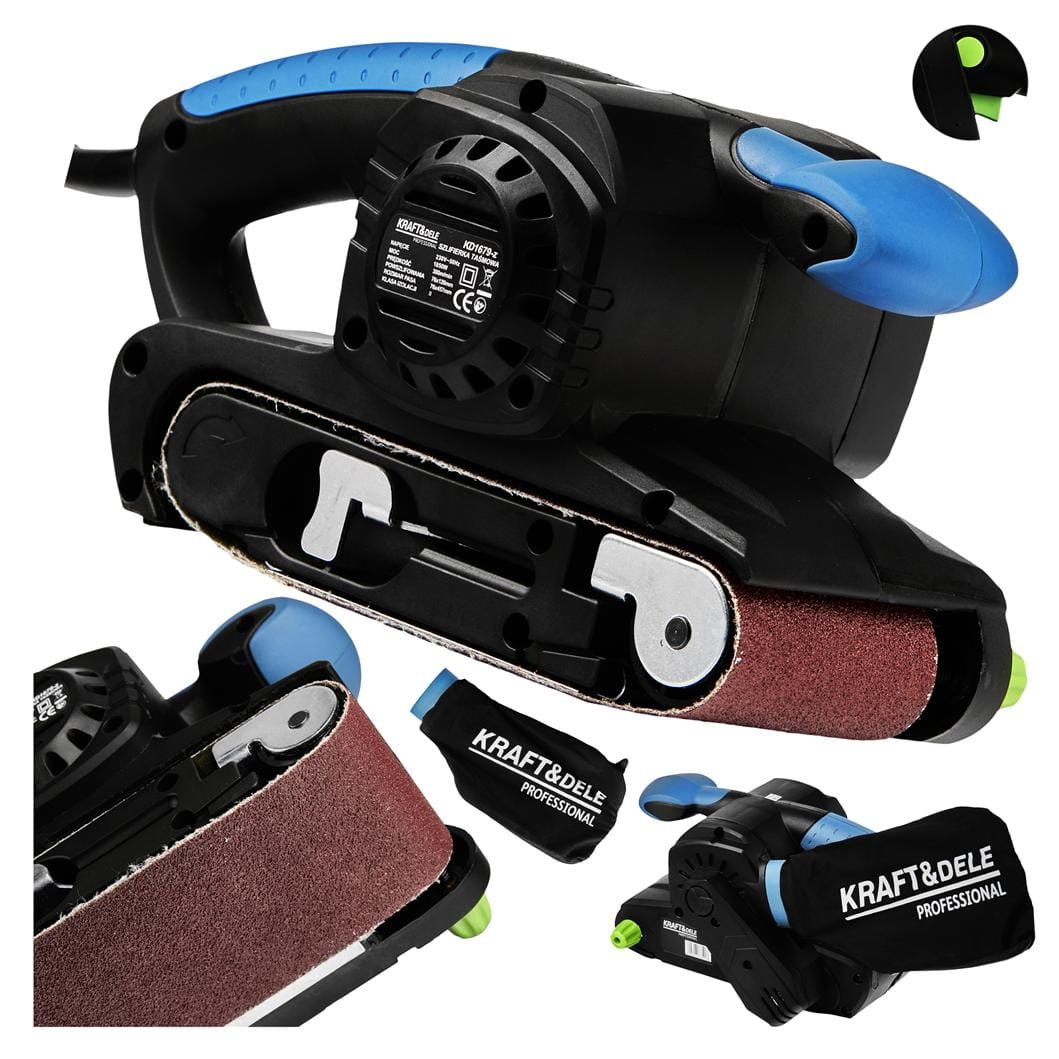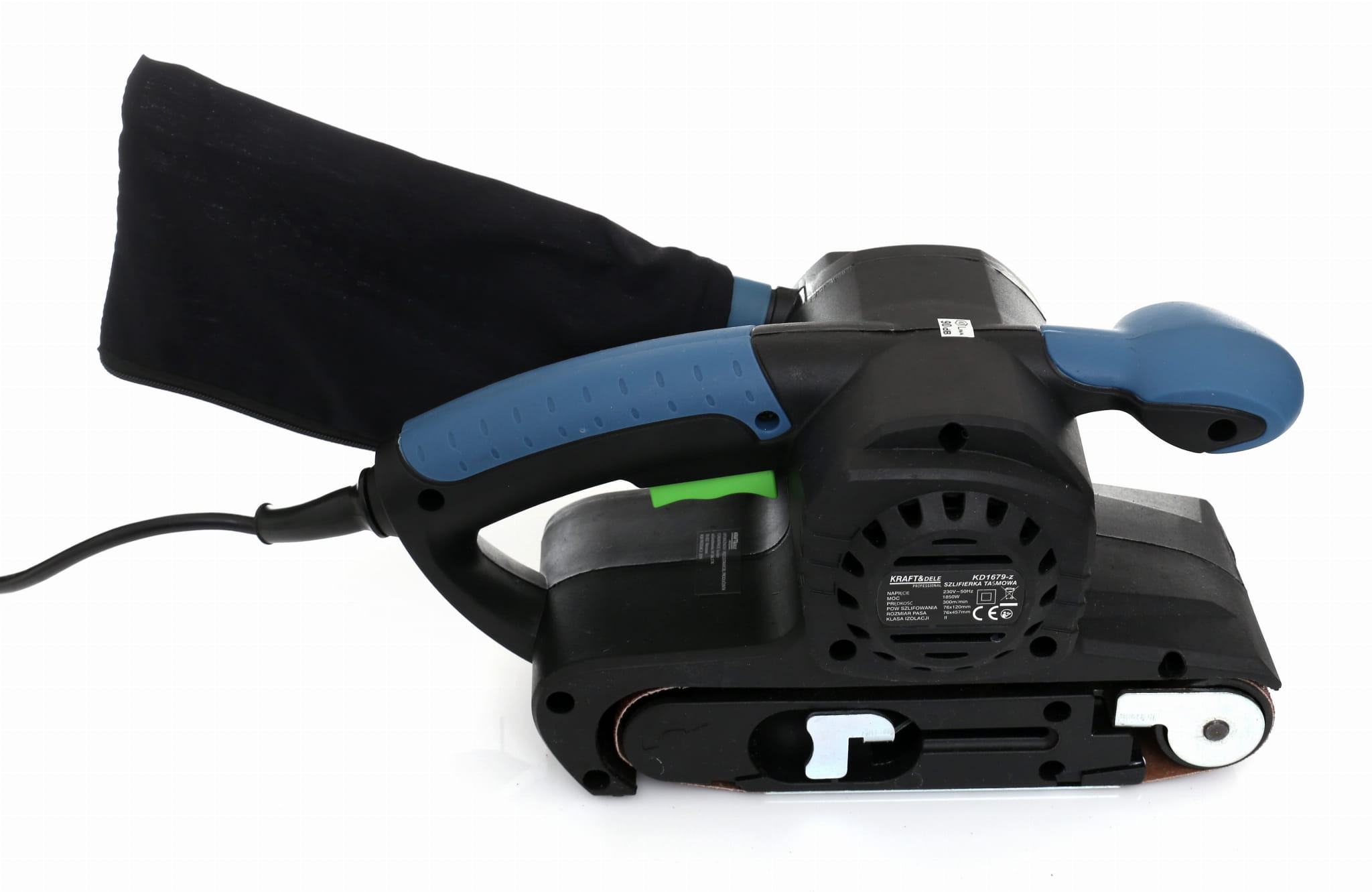 Do szlifierki pasują standardowe taśmy ścierne 76×457mm. Do szlifowania wstępnego i usuwania powłok stosuje się gradacje P40–P80, do szlifowania pośredniego P100–P150, a do wykończenia powierzchni przed malowaniem P180–P240. Zaleca się stosowanie taśm z otworami, które współpracują z systemem odprowadzania pyłu urządzenia.