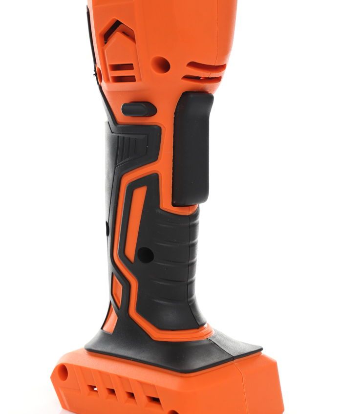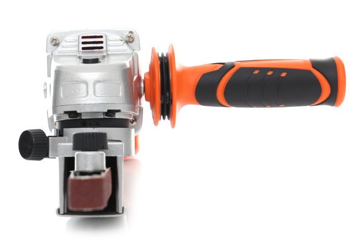 Antypoślizgowa powłoka rękojeści głównej ogranicza ryzyko ześlizgnięcia się dłoni podczas pracy. Dodatkowa rękojeść boczna zwiększa stabilność trzymania i precyzję prowadzenia urządzenia, co ma szczególne znaczenie przy obróbce drobnych elementów.