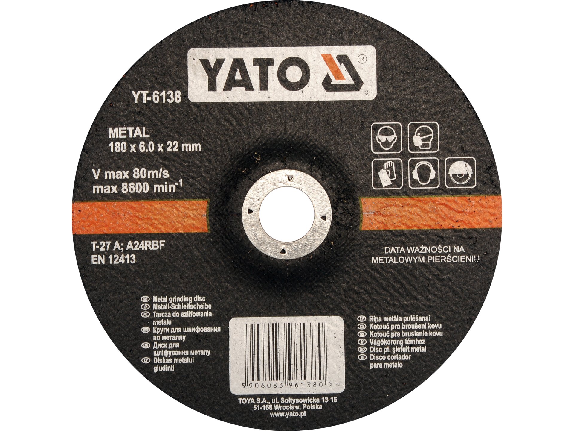 TARCZA WYP. DO SZLIF. METALU 180x6,0 YT-6138 YATO