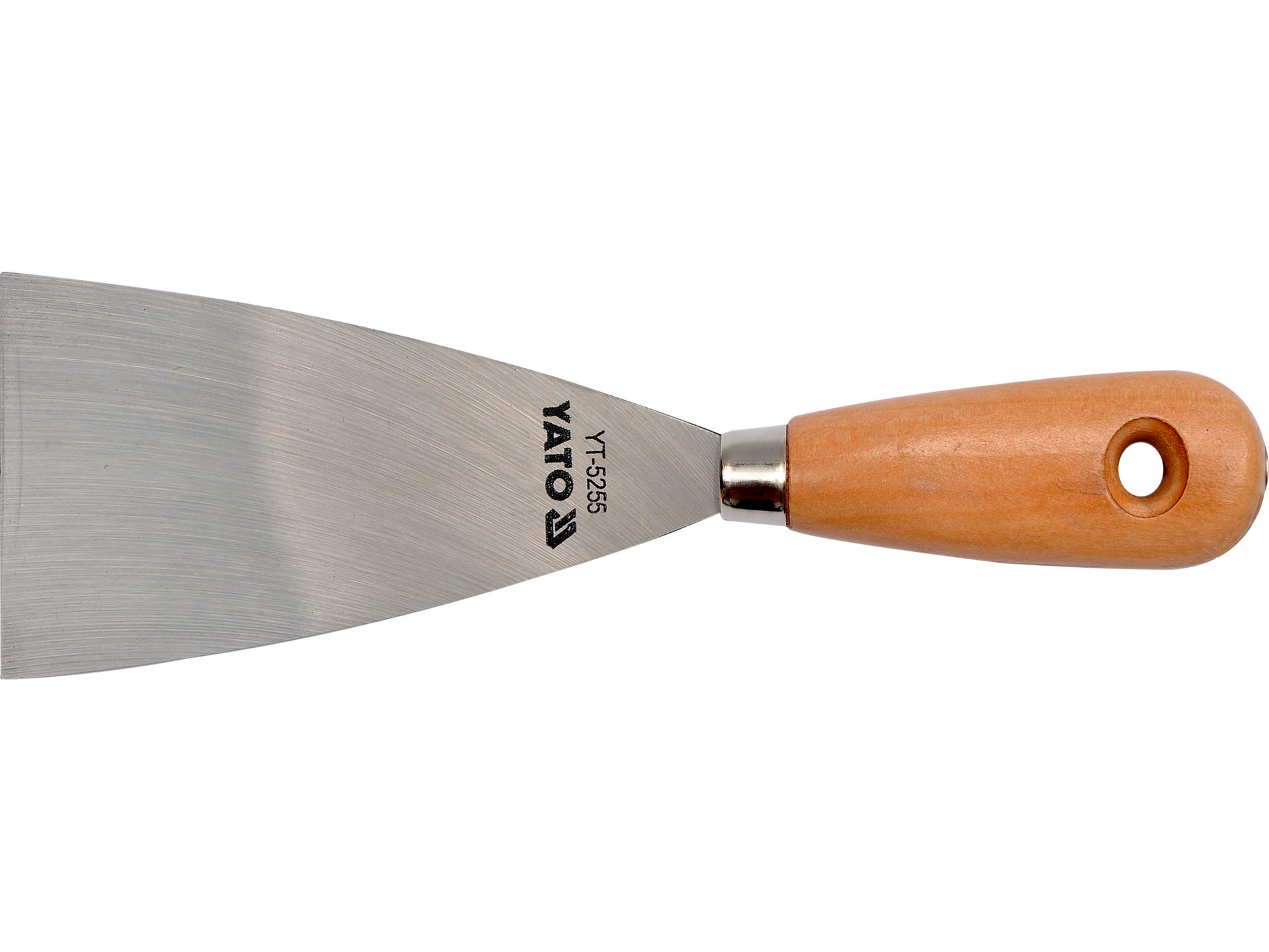 Szpachelka marki Yato.z drewnianą rękojeścią. Szpachelka wykonana z sprężystej stali manganowej 65Mn, szlifowanej mechanicznie. Rękojeść lakierowana.