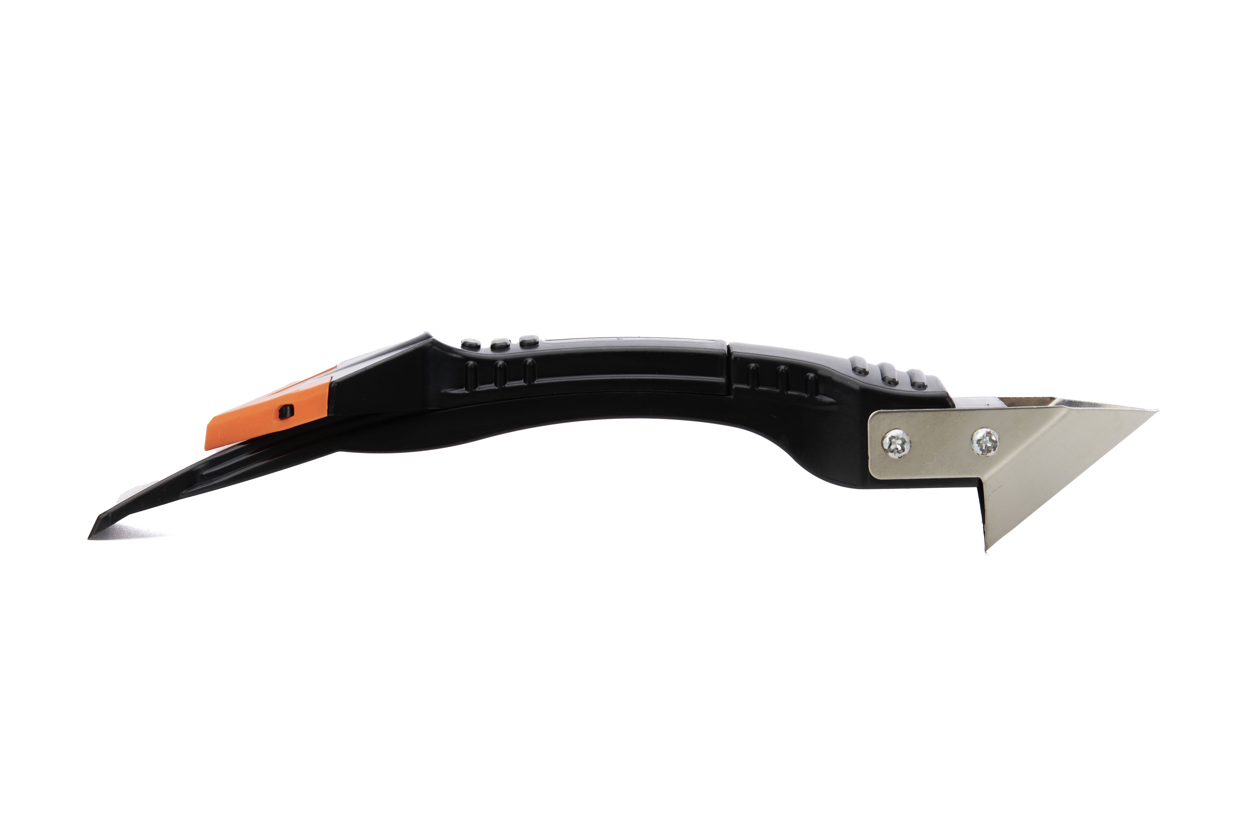 Połączenie nożyka i metalowego zdzieraka ułatwia pracę zarówno przy świeżych, jak i mocno związanych pozostałościach.
