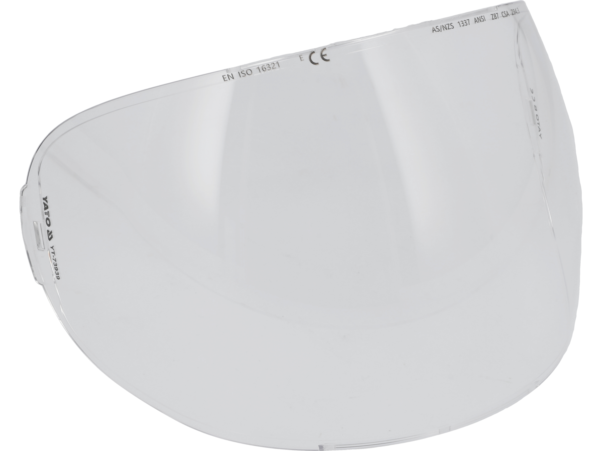 Wymiary szybki zapewniają szerokie pole widzenia, umożliwiając obserwację strefy spawania bez konieczności częstego przechylania głowy. Format odpowiada standardowi przyłbic YATO z serii YT-73938, gwarantując precyzyjne dopasowanie.