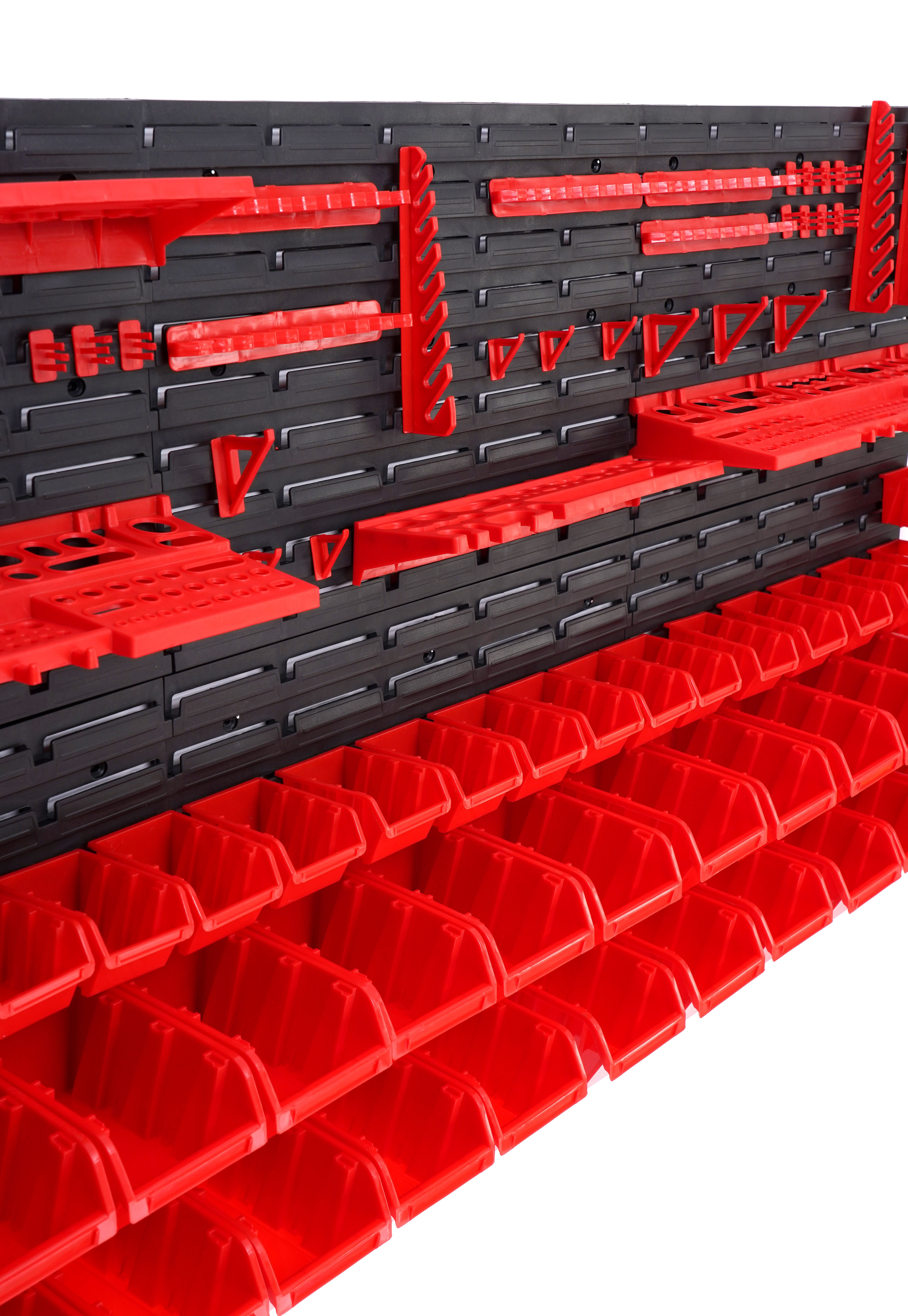 Tablica warsztatowa KD11861 to praktyczna ścianka do porządkowania akcesoriów i drobnych elementów w miejscu pracy. Sprawdza się tam, gdzie liczy się szybki dostęp, przejrzystość i możliwość dopasowania układu pojemników oraz uchwytów do własnych zadań. Zestaw jest sprzedawany bez narzędzi.