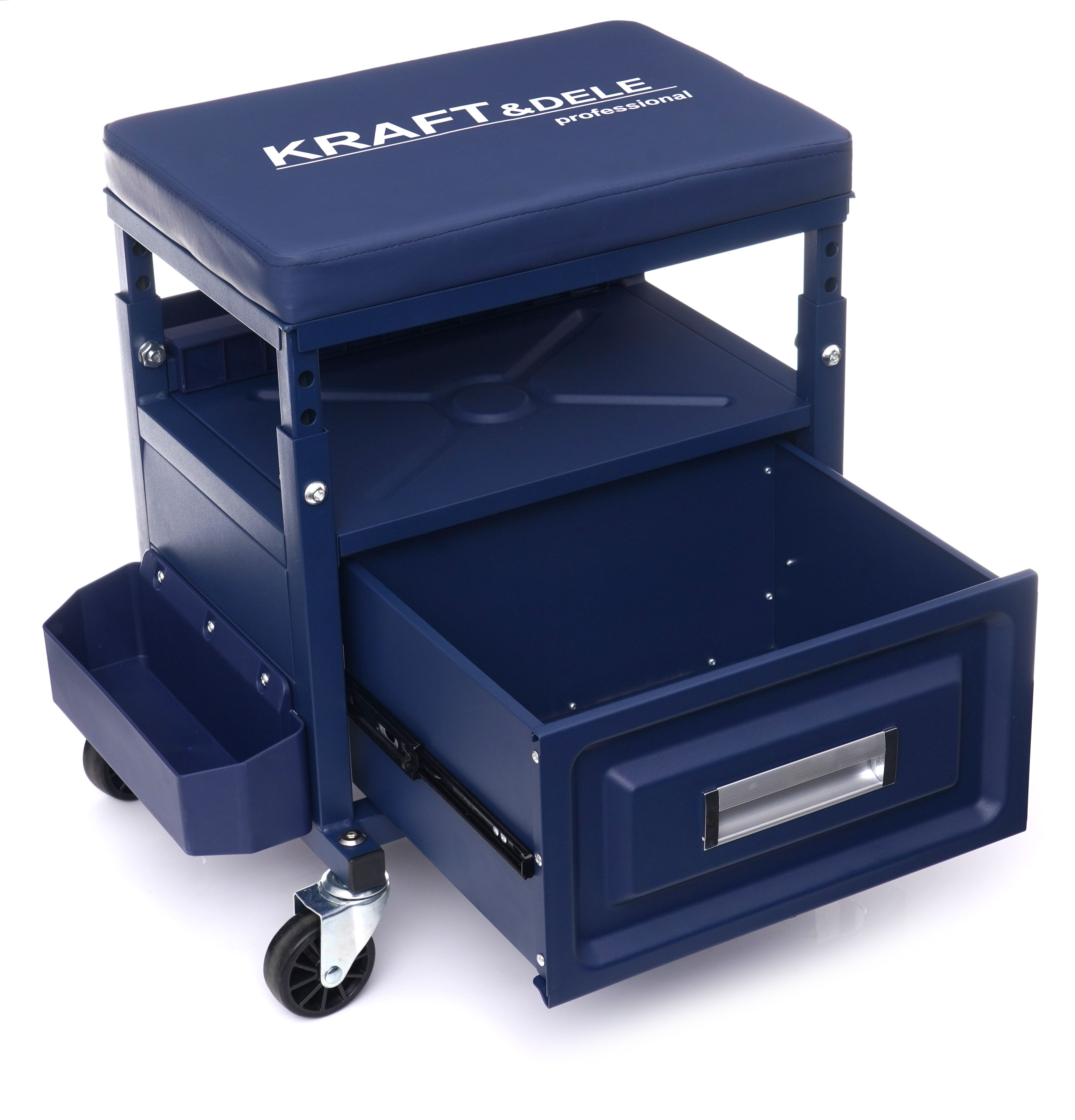 Taboret warsztatowy z szufladą KD10761 marki KRAFT&DELE łączy wygodne siedzisko z praktycznym miejscem na narzędzia pod ręką. To rozwiązanie do pracy w warsztacie, serwisie samochodowym i w przydomowym garażu, gdy liczy się porządek i szybki dostęp do akcesoriów.