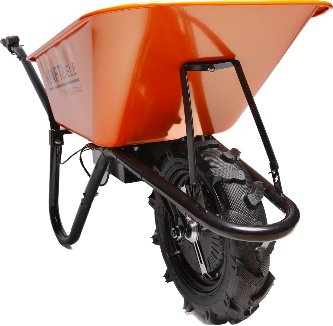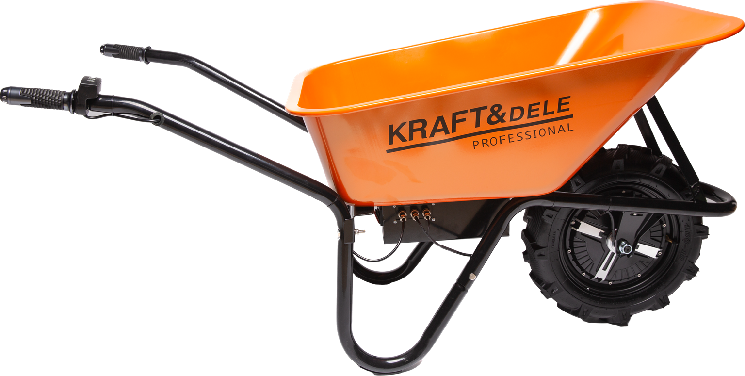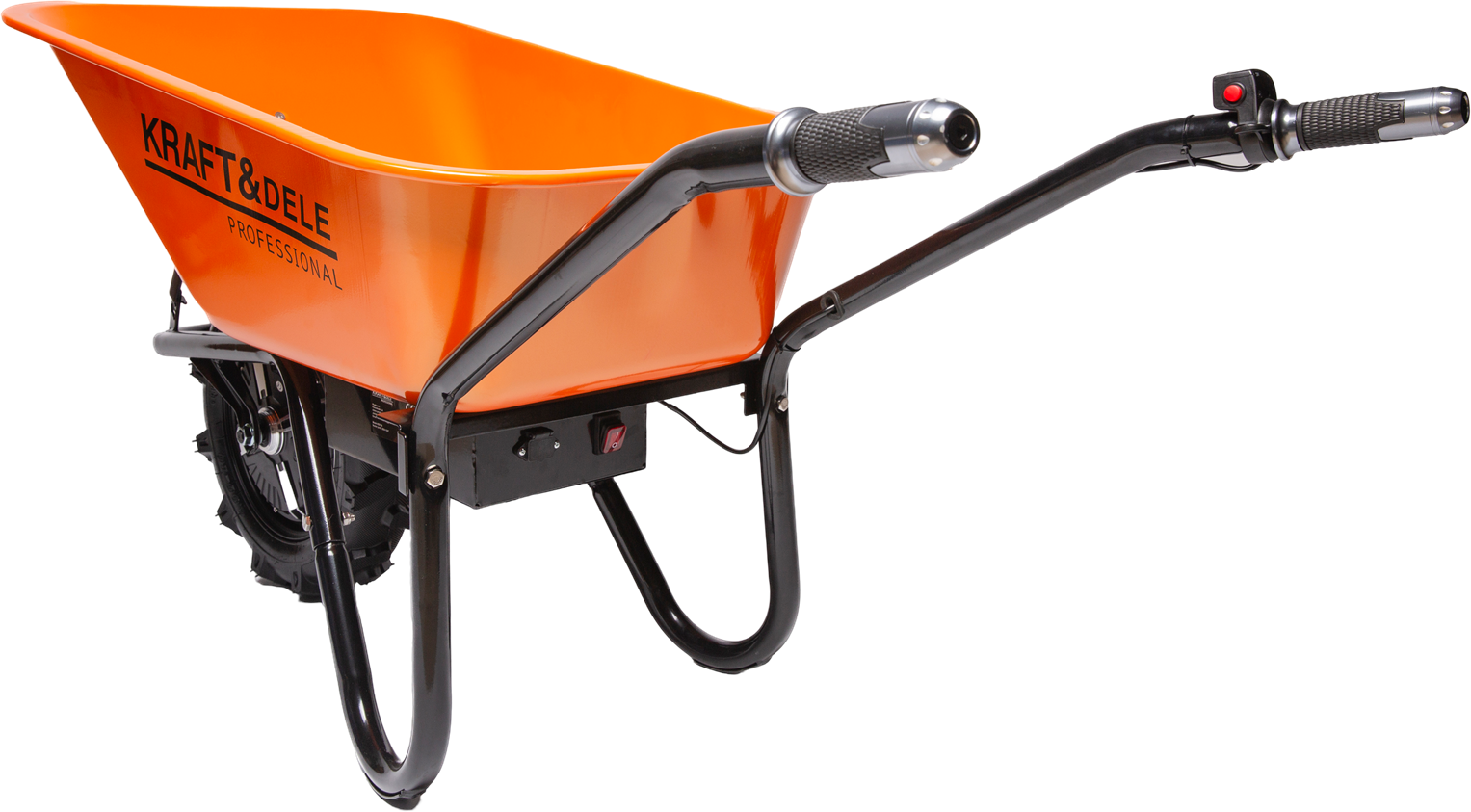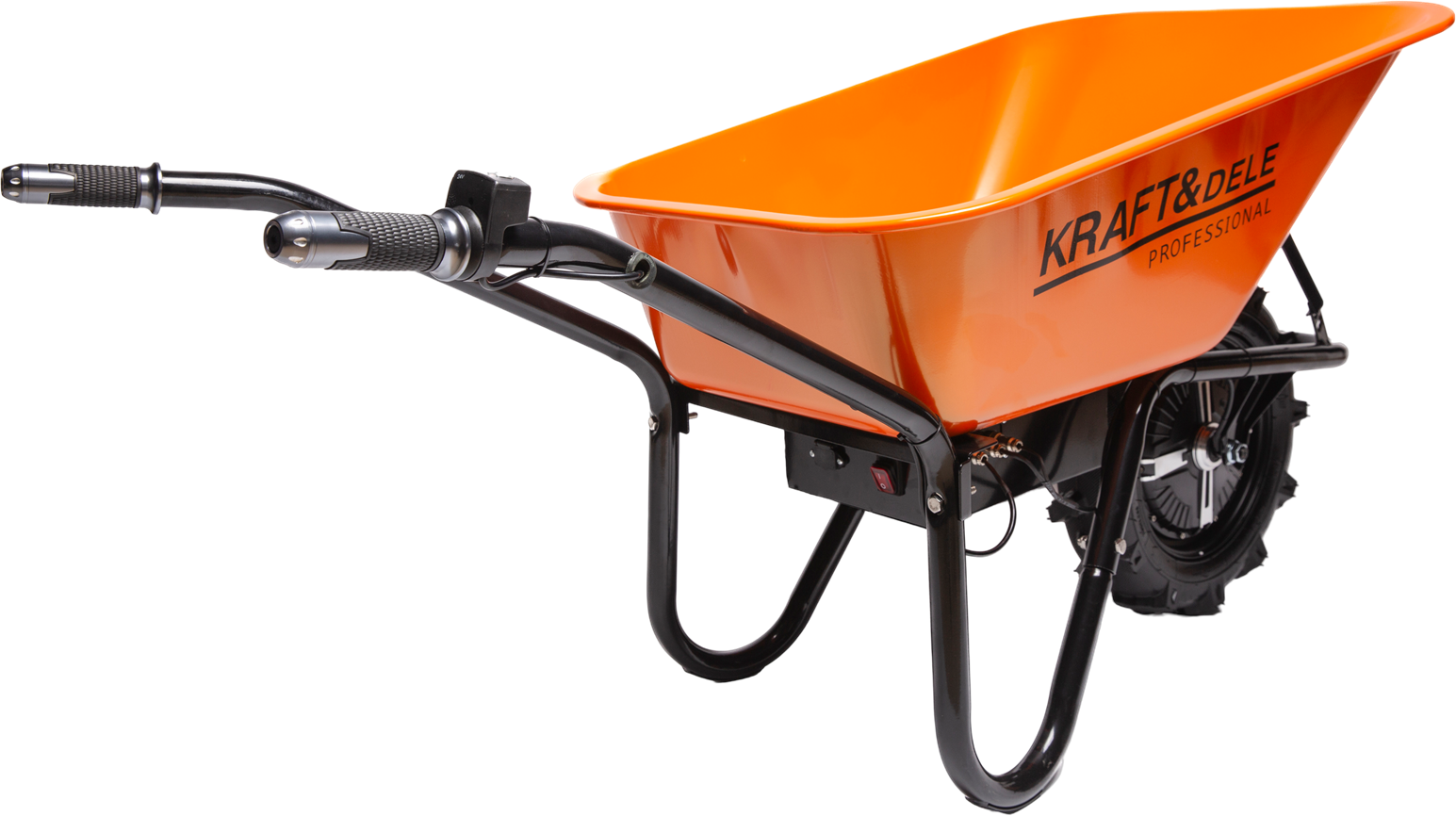 KD3125 to samobieżna taczka akumulatorowa marki Kraft&Dele z napędem elektrycznym 24V i silnikiem 550W. Przeznaczona do transportu materiałów budowlanych, sypkich i półpłynnych na placach budowy, w ogrodach oraz w trudnym terenie — bez konieczności ręcznego pchania ładunku.